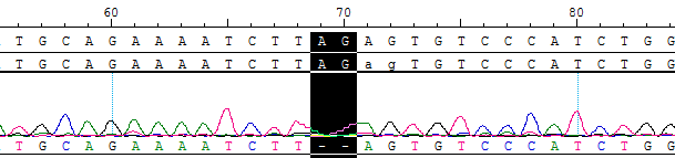 | DNA Change | c.66_67delAG |