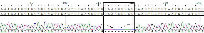 AA Change p.K128_R130delAAGGGACGA