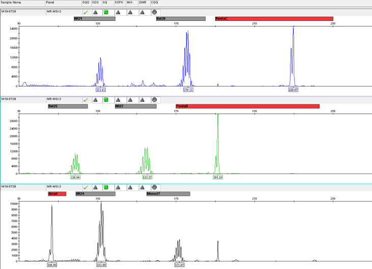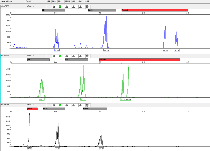 微衛(wèi)星是人類基因組的一段串聯(lián)重復(fù)序列,一般在1~6bp之間,又被稱作短串連重復(fù)(Short Tandem Repeats,STRs)或簡單重復(fù)序列(Simple Sequence Repeat,SSRs)。 微衛(wèi)星不穩(wěn)定(Microsatellite Instability,MSI)指的是微衛(wèi)星重復(fù)次數(shù)減少或者增加,微衛(wèi)星不穩(wěn)定的內(nèi)在機(jī)制是錯(cuò)配修復(fù)(MMR)系統(tǒng)失調(diào),從而限制了糾正微衛(wèi)星自發(fā)的長度改變的體細(xì)胞突變的能力,體細(xì)胞突變積累,最終形成MSI。