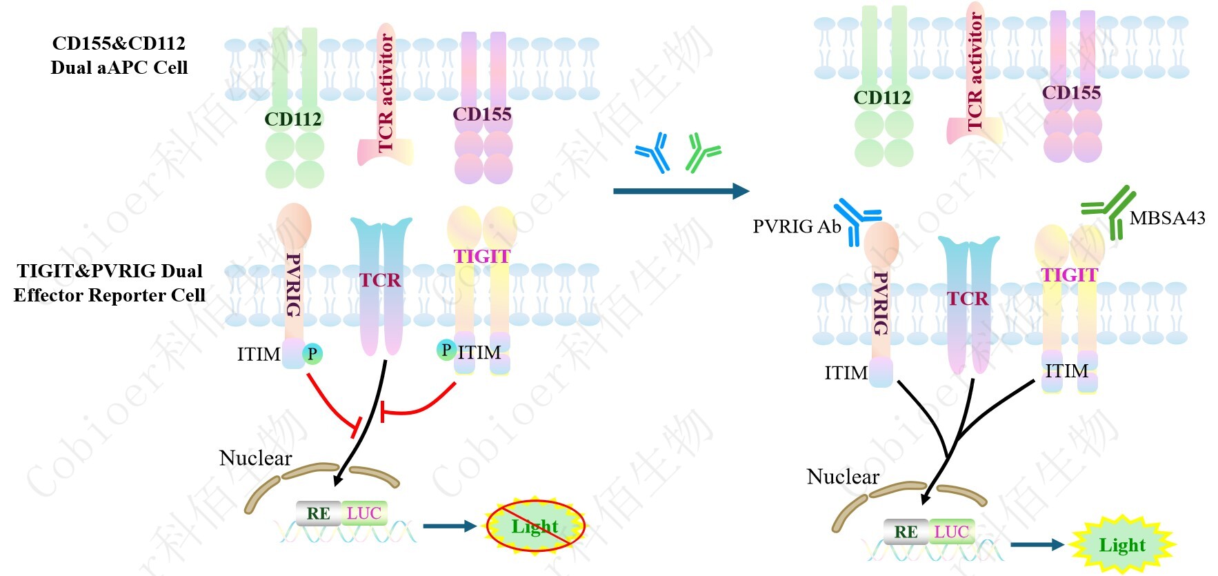 Figure 1.TIGIT&PVRIG Dual Effector Reporter Cell 細胞模型原理圖