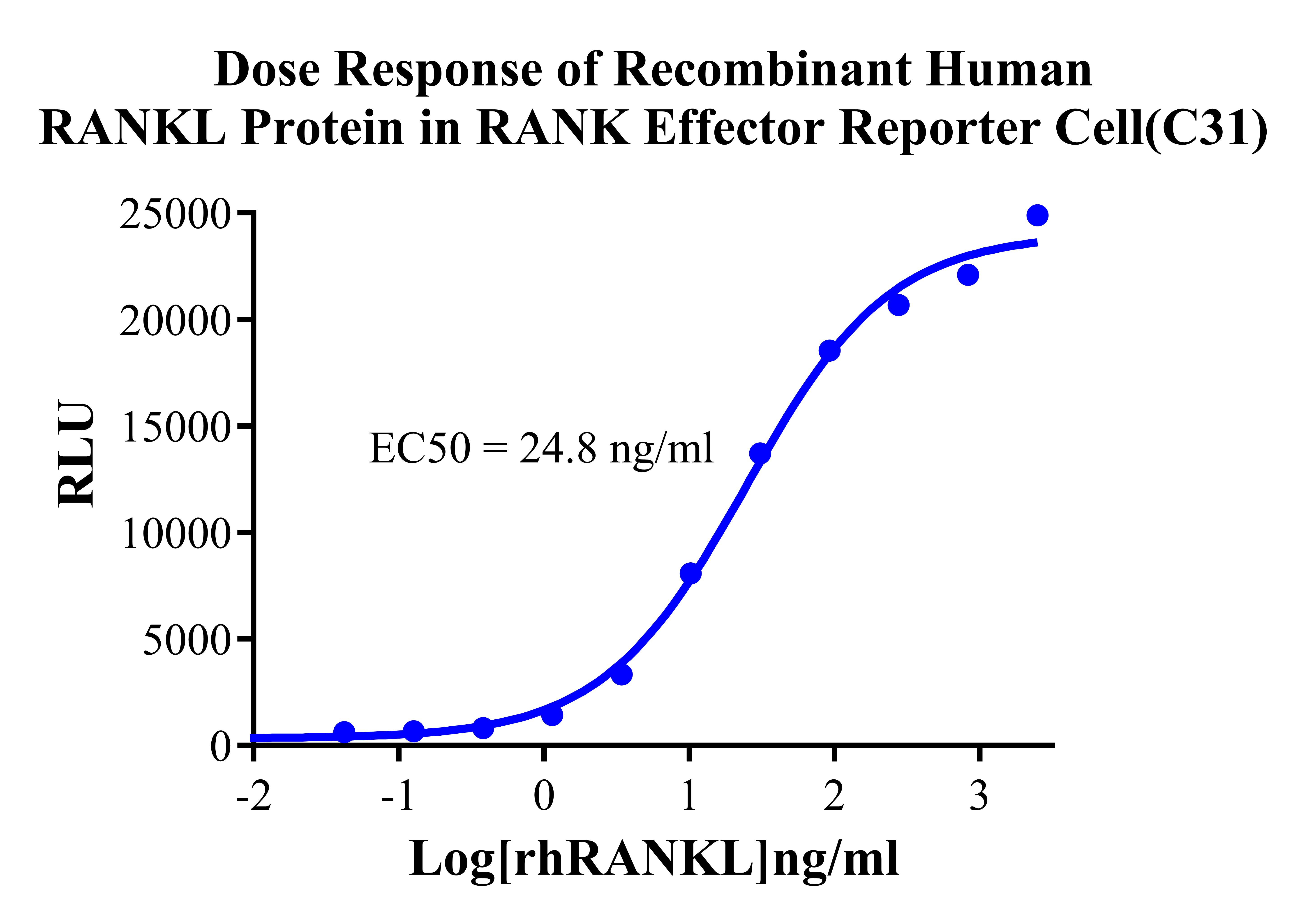 Figure 3. lnhibition of rhRANKL-induced Reporter Activity by RANKL Neutralizing Antibody in RANK Effector Reporter Cell(C31). |