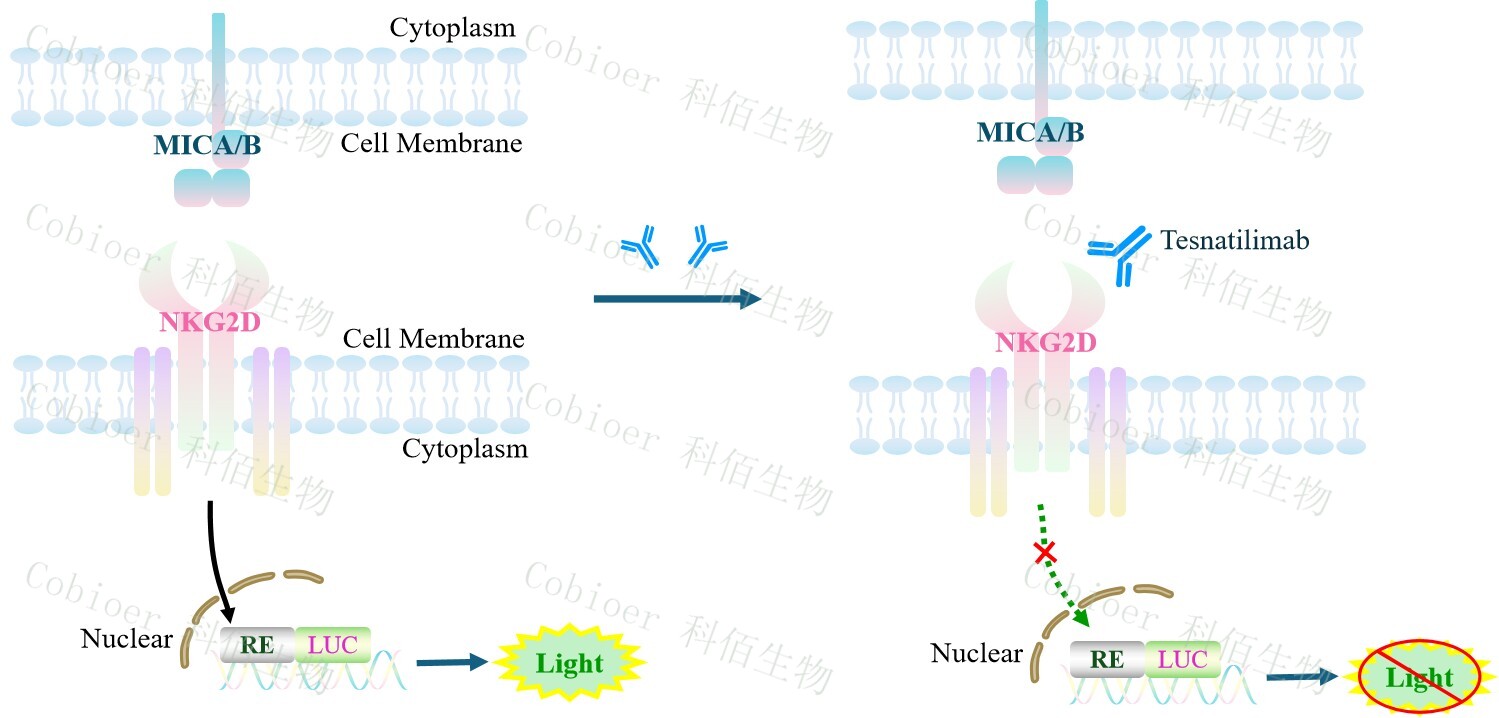 NKG2D Effector Reporter Cell 報告基因藥靶模型很好的模擬了體內(nèi) NKG2D 的信號轉(zhuǎn)導過程,原理見下圖所示。![]() Figure 1. NKG2D Effector Reporter Cell 細胞模型原理圖 |