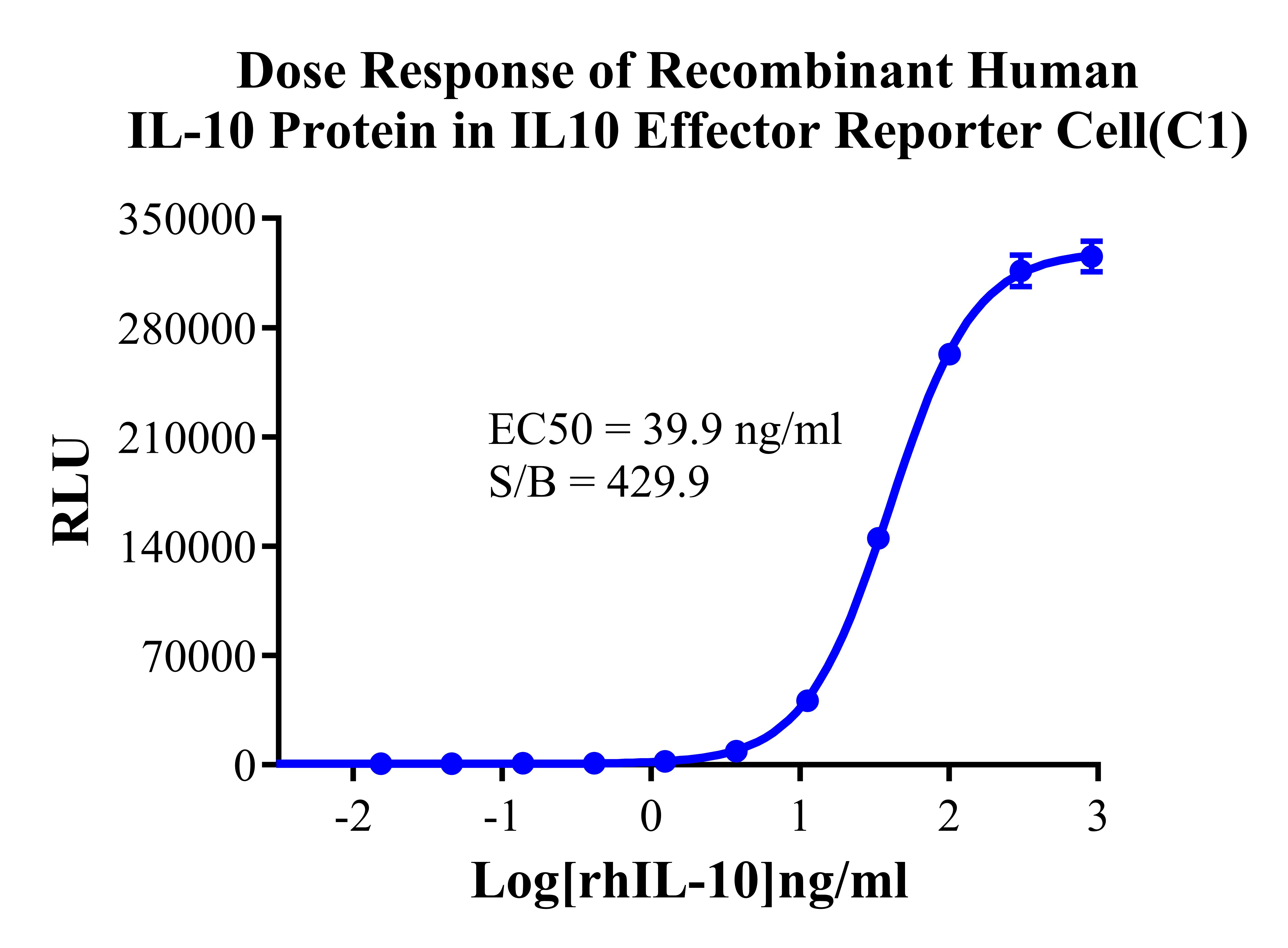 Figure 2.Dose Response of Recombinant Human IL-10 Protein in IL10 Effector Reporter Cell(C1). |