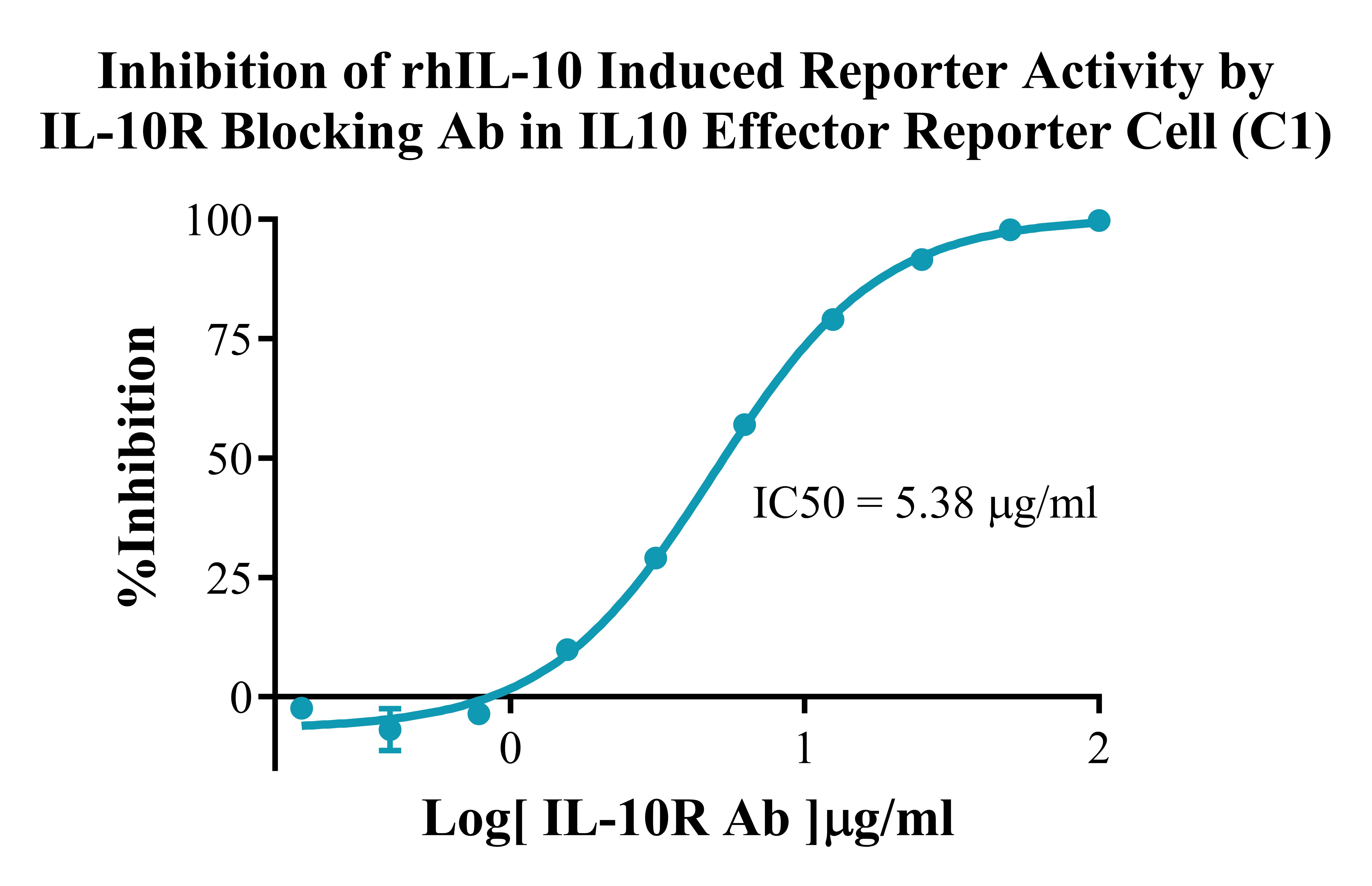 Figure 3.Inhibition of rhIL-10 Induced Reporter Activity by IL-10R Blocking Ab in IL 10 Effector Reporter Cell(C1). |