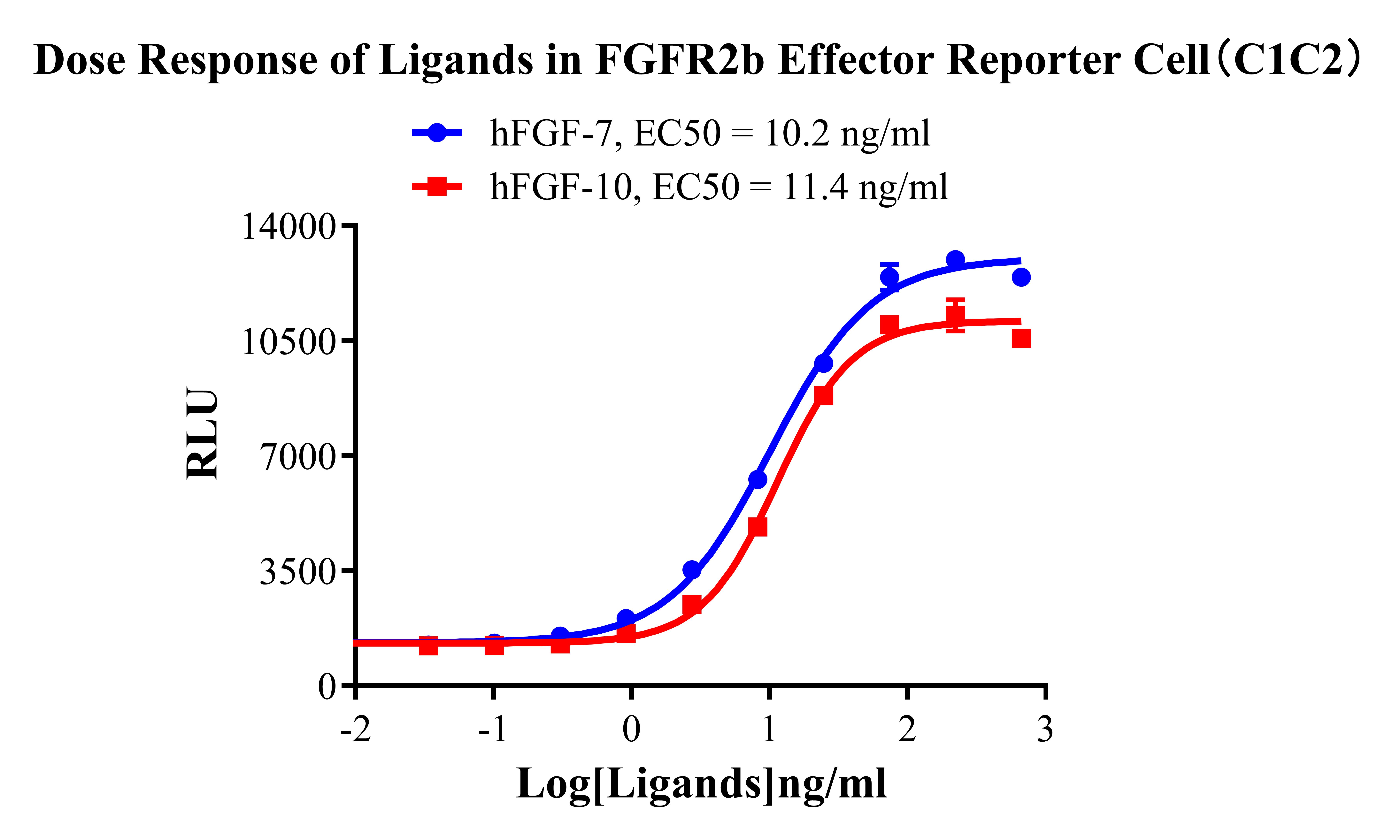 Figure 2. Dose Response of Ligands in FGFR2b Effector Reporter Cell (C1C2).