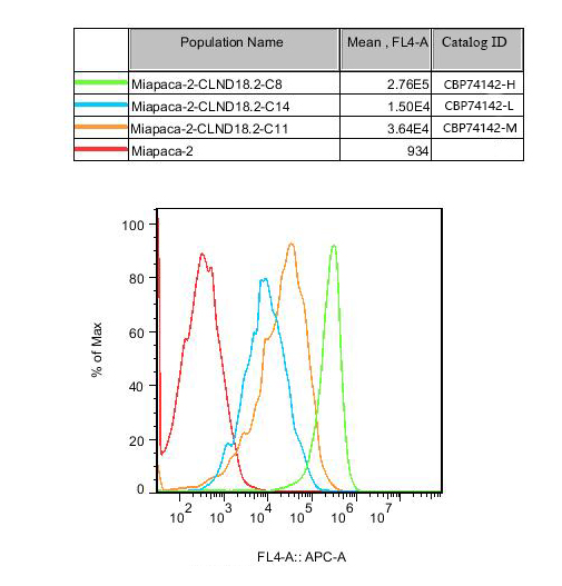 Claudin18是位于細(xì)胞膜表面緊密連接的主要成分,它在維持細(xì)胞極性和屏障功能以及促進(jìn)耐酸能力方面起著重要作用。CLDN18的第一個(gè)外顯子可以選擇性剪接,形成兩個(gè)具有高度同源氨基酸序列的不同剪接突變體(CLDN18.1和CLDN18.2)??缒さ鞍證LDN18由兩個(gè)細(xì)胞外環(huán)、四個(gè)跨膜結(jié)構(gòu)域和一個(gè)細(xì)胞質(zhì)結(jié)構(gòu)域組成。 |
