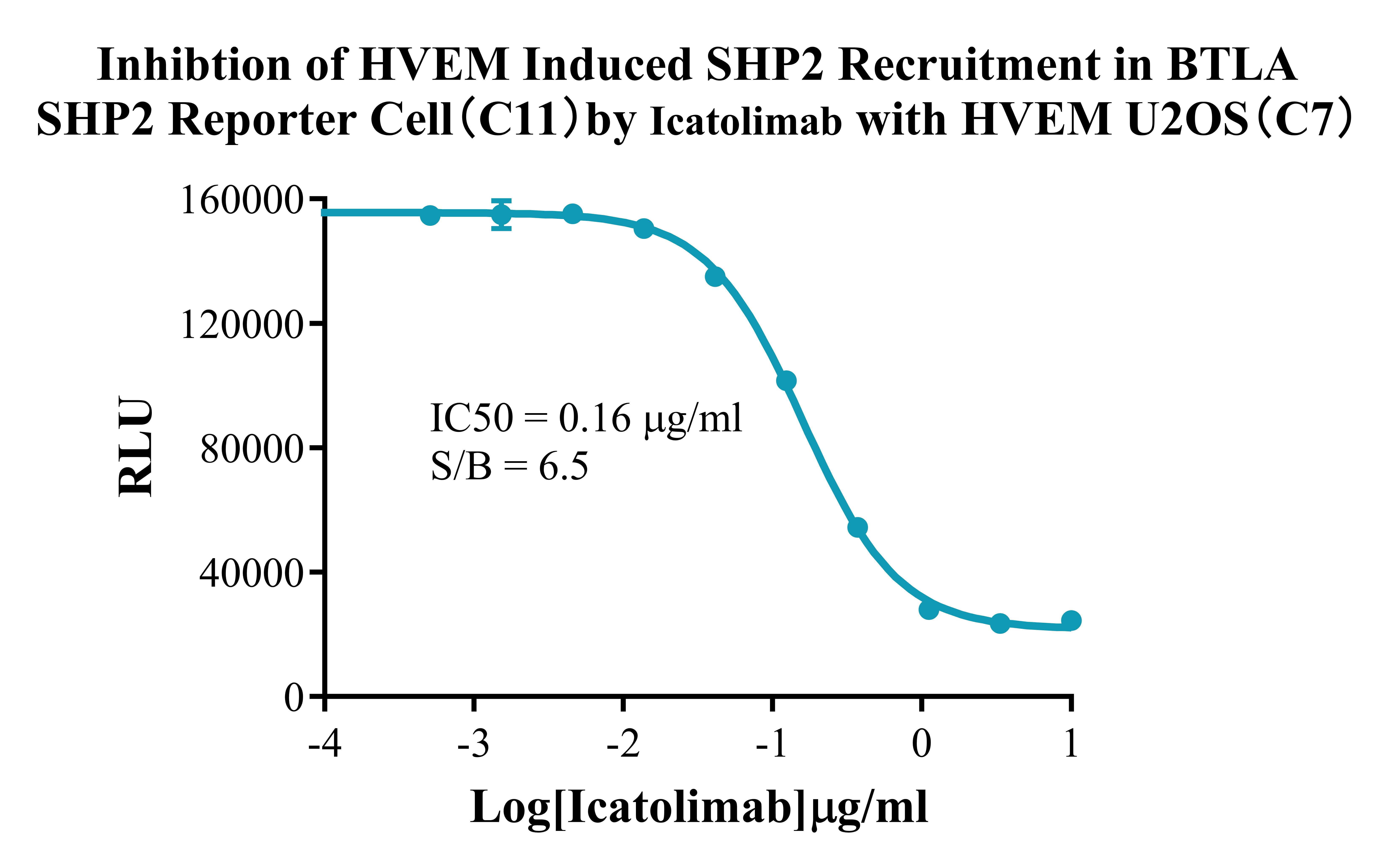 Figure 3. Inhibtion of HVEM Induced SHP2 Recruitment In BTLA SHP2 Reporter Cell(C11) By lcatolimab With HVEM U2OS (C7).