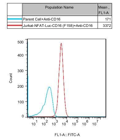 Figure 2. Recombinant ADCC Bioassay Effector Cell F variant (Low Affinity)- Fcγ-NFAT/Jurkat expressing CD16.