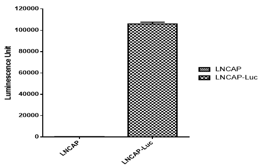 The number of Luminescence signal is 445±18(Mean±SD) on LNCAP cells while 104579±1558(Mean±SD) on LNCAP-Luc cells.