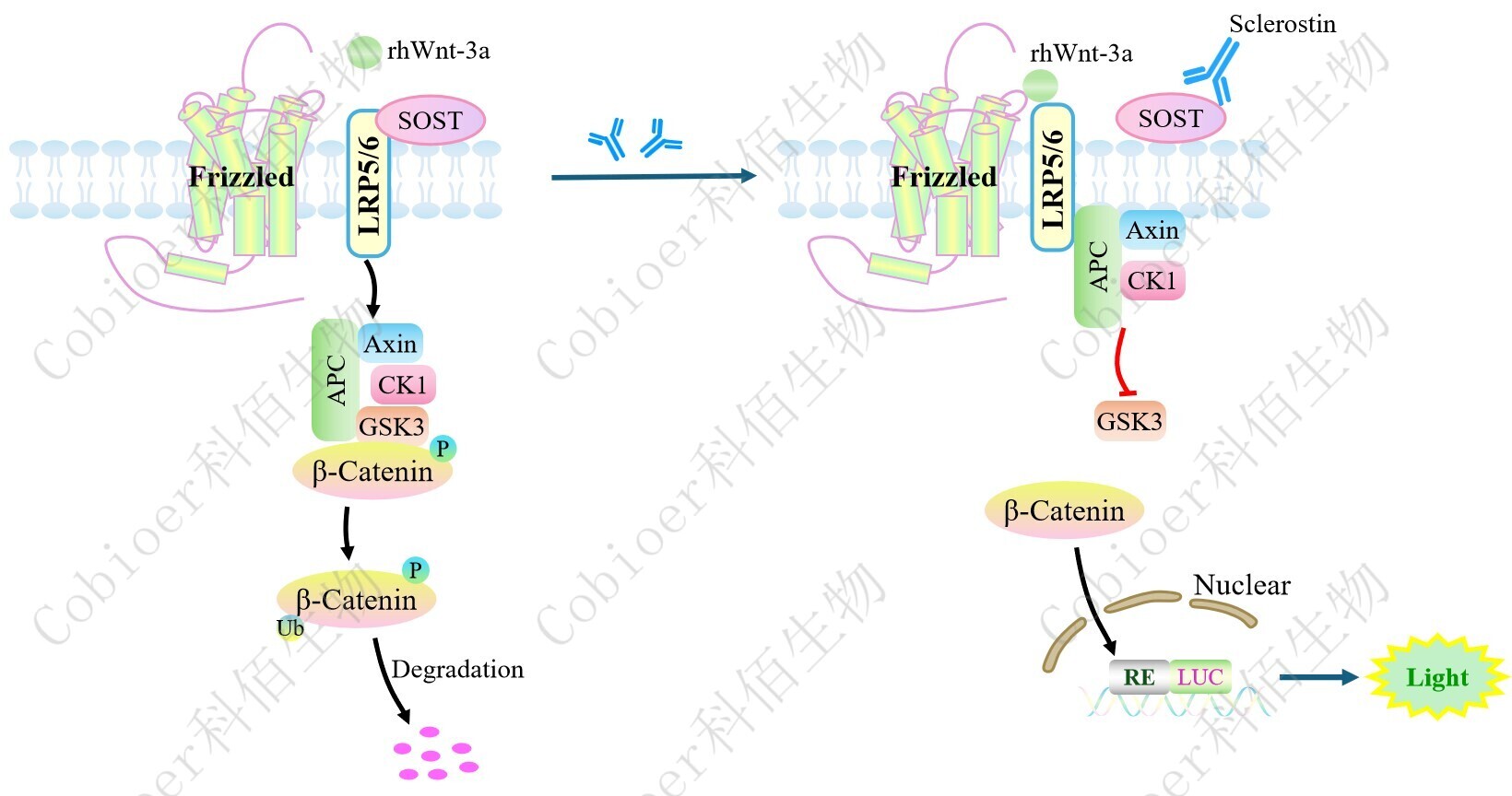 SOST Effector Reporter Cell 報告基因藥靶模型很好的模擬了體內(nèi) WNT 的信號轉(zhuǎn)導(dǎo)過程, 原理見下圖所示。![]() Figure 1. SOST Effector Reporter Cell 模型原理圖 |