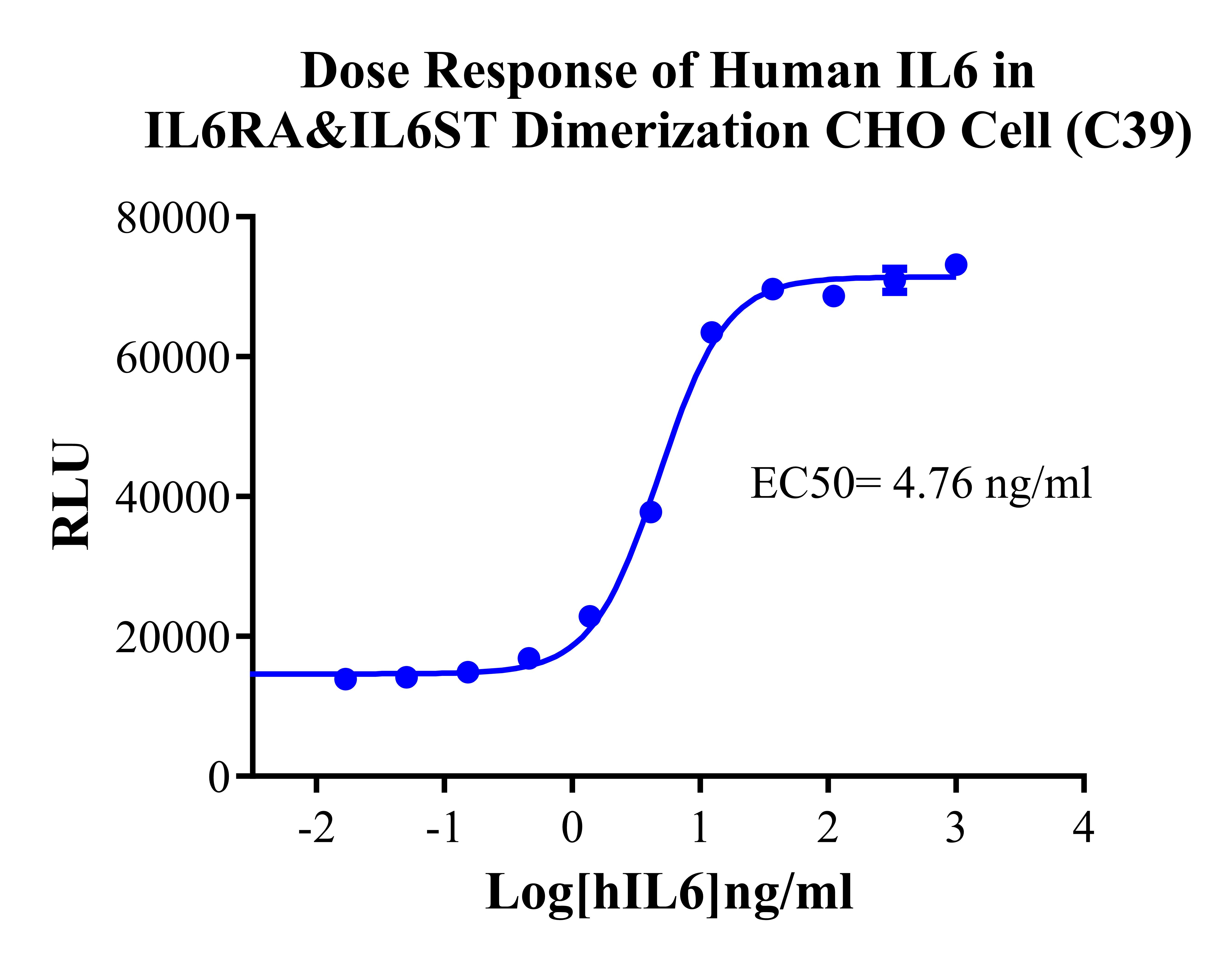 Figure 2. Dose response of Recombinant Human IL6 in IL6R&IL6ST Dimerization CHO Cell(C39).
