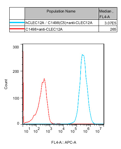 Figure 1. Recombinant hCLEC12A/C1498 stably expressing hCLEC12A.