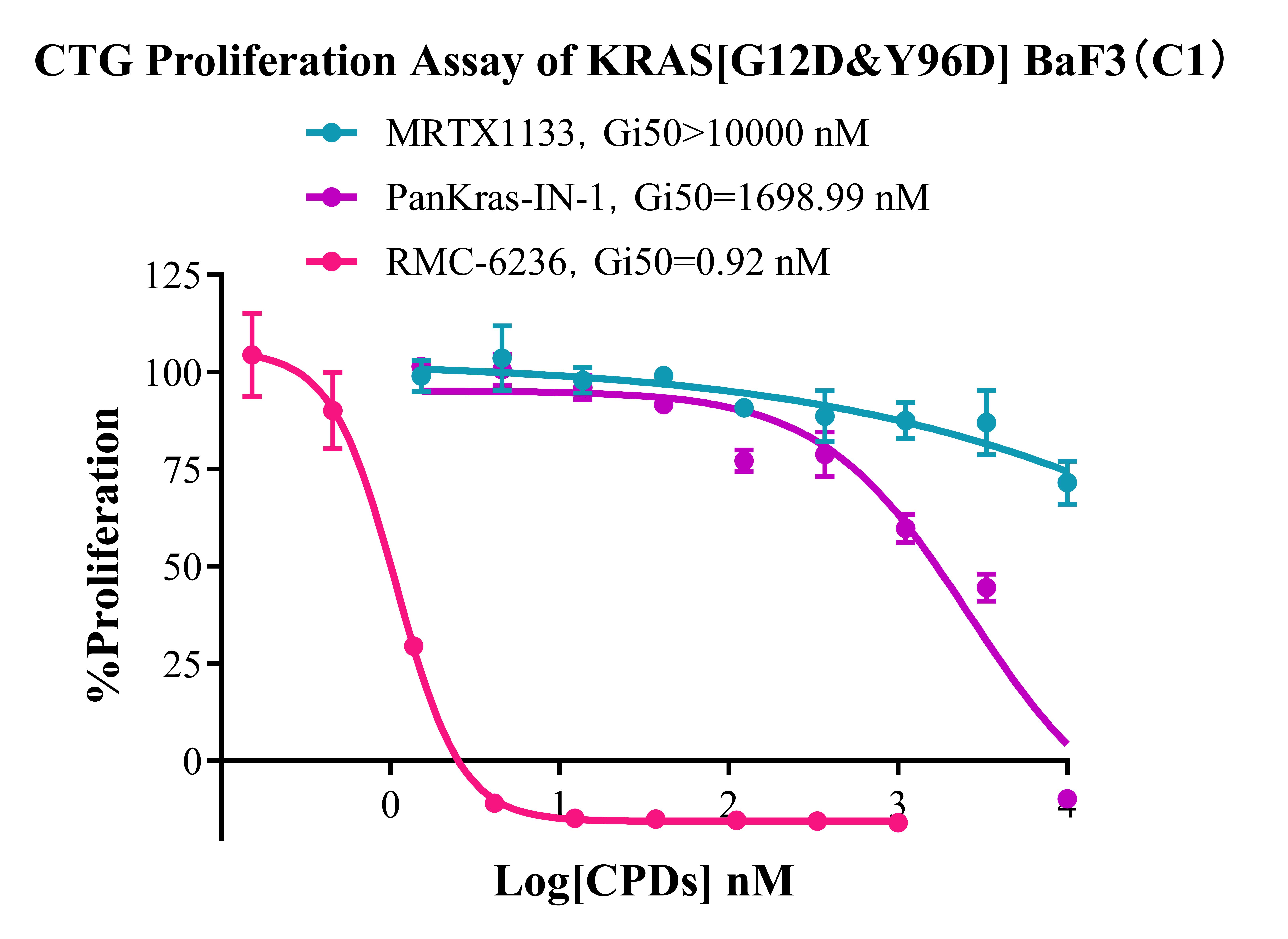Figure 4. CTG Proliferation Assay of KRAS[G12D&Y96D] BaF3 (C1).