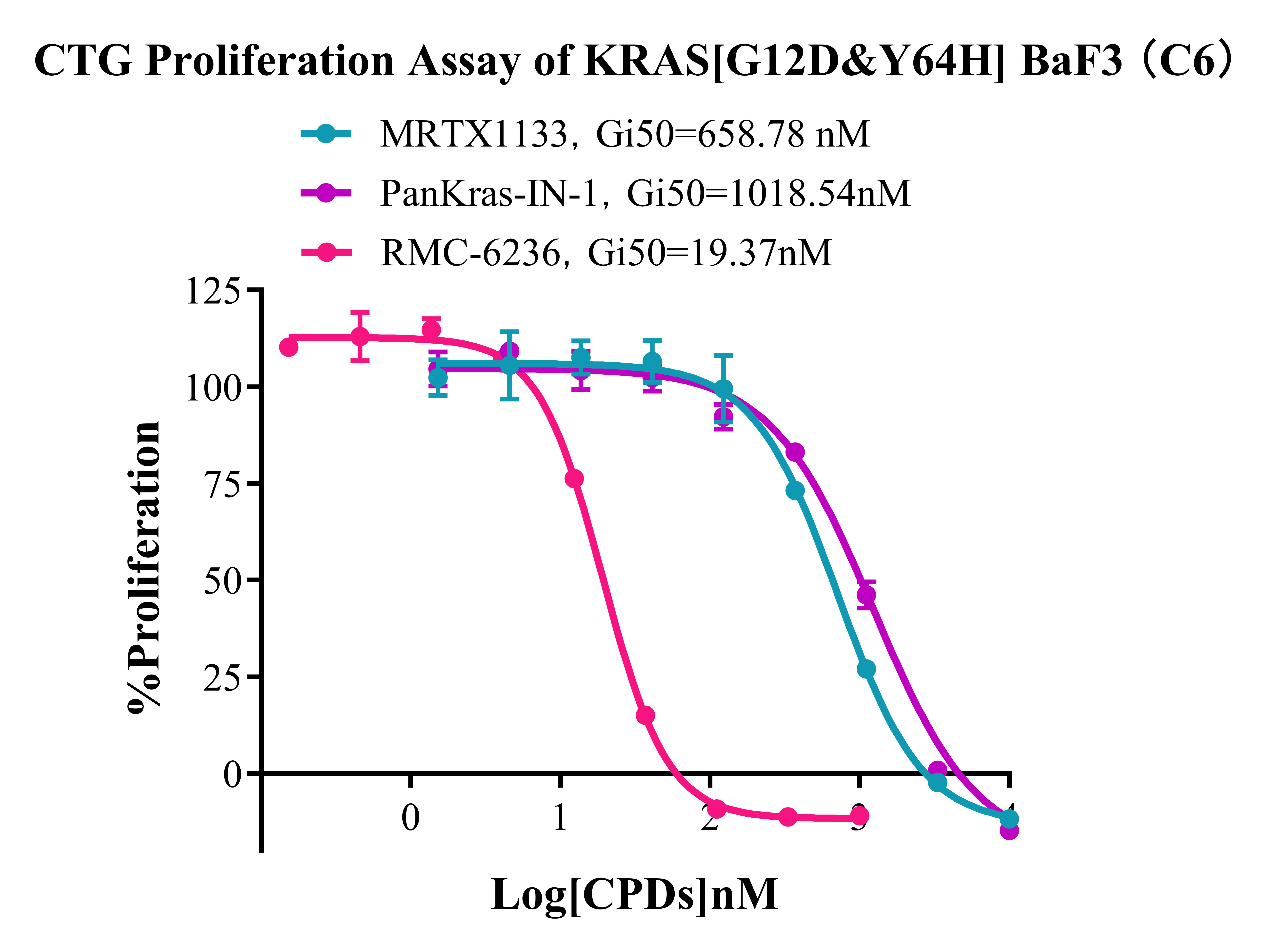 3. Anti-proliferation assay Figure 4. CTG Proliferation Assay of KRAS[G12D&Y64H] BaF3 (C6). |