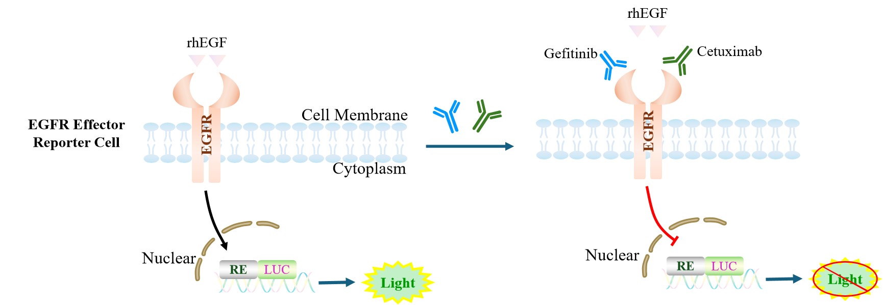 Figure 1. EGFR Effector Reporter Cell 細(xì)胞模型原理圖