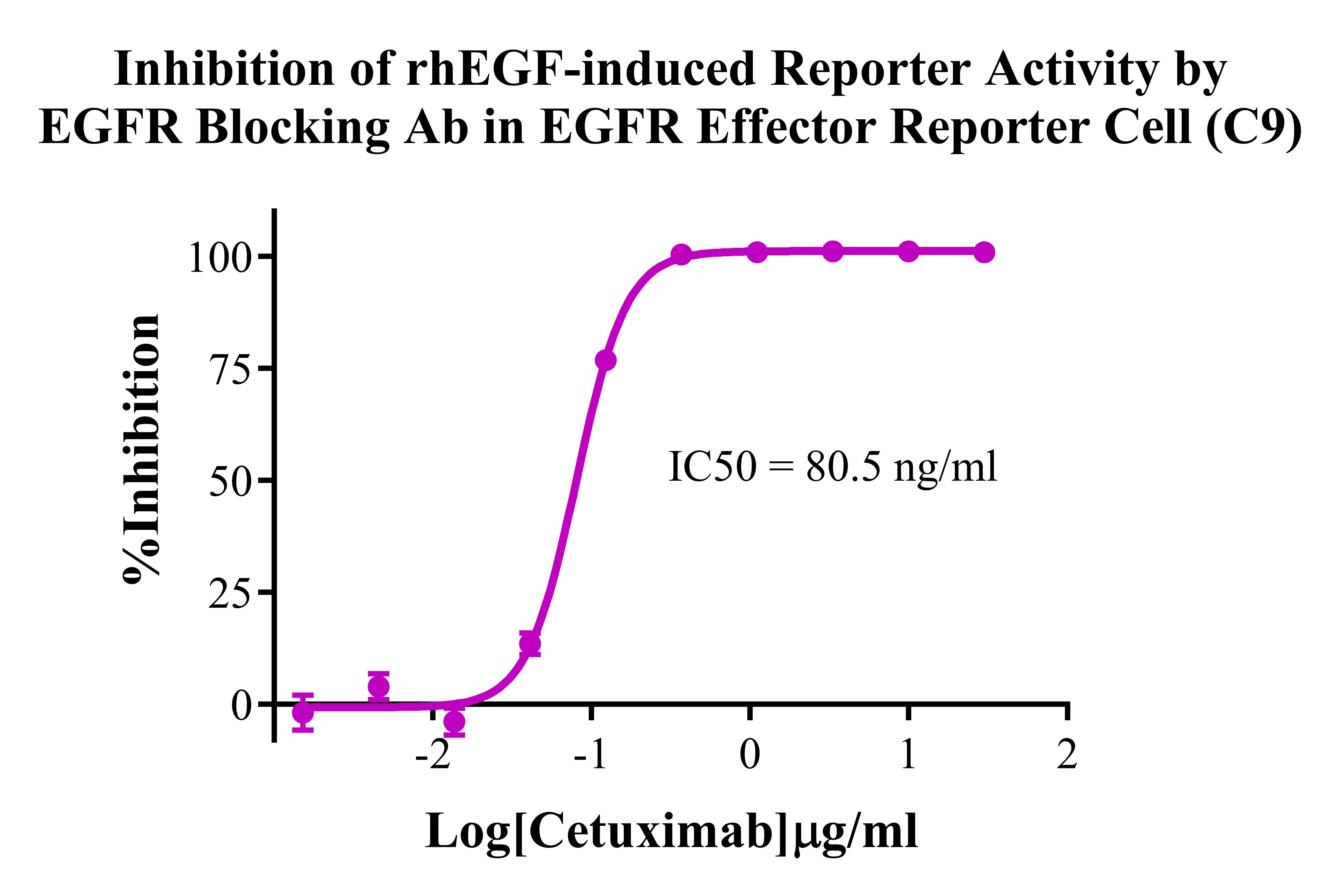 Figure 4. Inhibition of rhEGF-induced Reporter Activity by EGFR Blocking Ab in EGFR Effector Reporter Cell (C9).