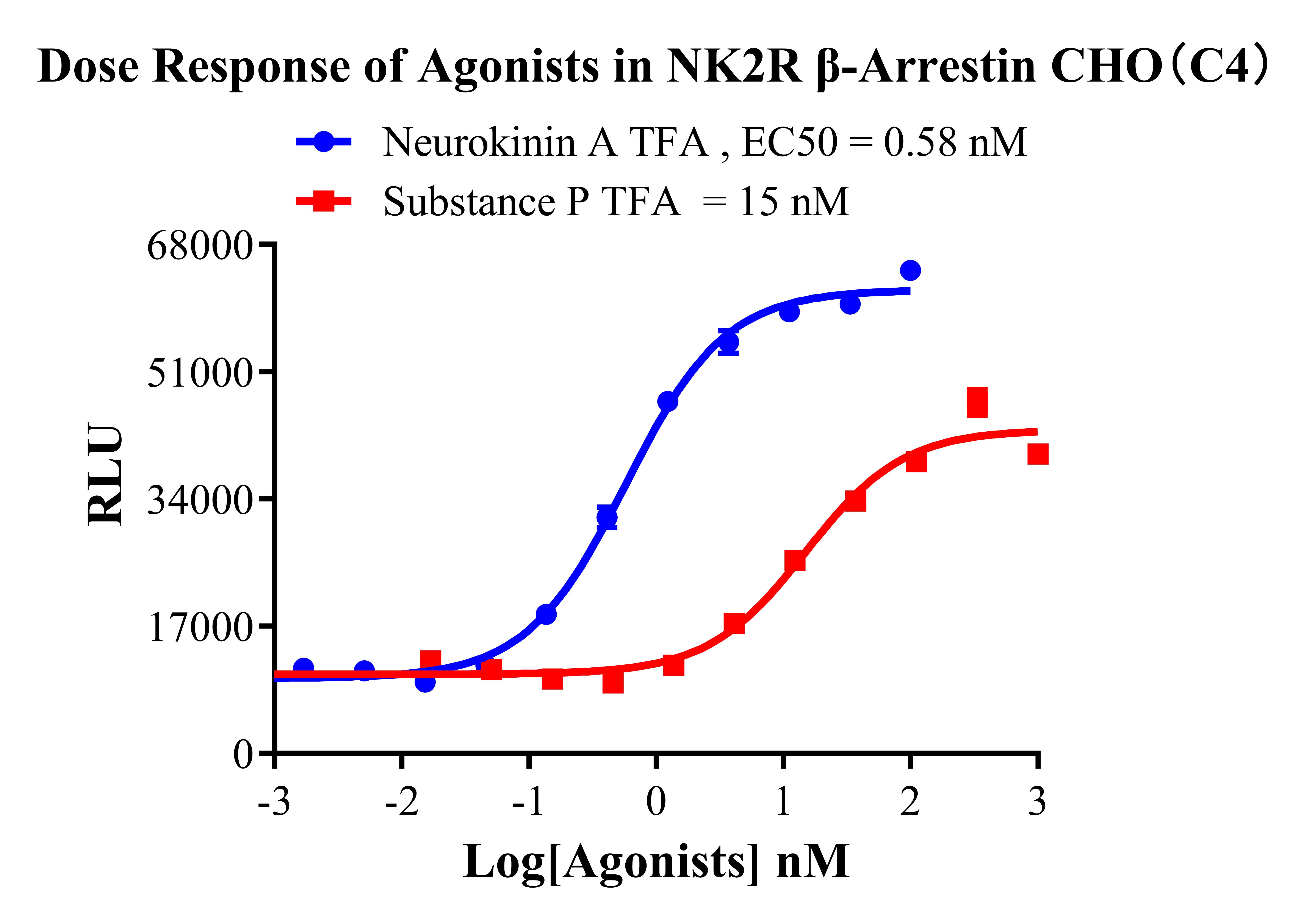 速激肽(Tachykinins )是分布在哺乳動(dòng)物中樞和周圍神經(jīng)系統(tǒng)中的一類神經(jīng)肽。速激 肽物質(zhì) P(SP)、神經(jīng)激肽 A(NKA)和神經(jīng)激肽 B(NKB)共享一個(gè)保守的 C 端基序, 對(duì)速激肽受體(NK1R、NK2R 和 NK3R)的激活至關(guān)重要。NKA 優(yōu)先激活與 Gα偶聯(lián)的 NK2R,而 SP 和 NKB 分別優(yōu)先結(jié)合 NK1R 和 NK3R。三種速激肽都能夠在所有速激肽受 體類型中表現(xiàn)為完全激動(dòng)劑。 NK2R 是一種 GPCR,普遍存在于中樞和周圍神經(jīng)系統(tǒng),然而,有研究發(fā)現(xiàn),NK2R 與 血紅蛋白 A1c(HbA1c)水平顯著相關(guān)。HbA1c 是評(píng)估長(zhǎng)期血糖控制的重要指標(biāo),表明 NK2R 可能在糖代謝調(diào)控中發(fā)揮關(guān)鍵作用。 |