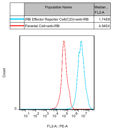 IV. Representative Data![]() Figure 1. Recombinant IRB Effector Reporter Cell stably expressing IRB. ![]() Figure 2. Dose Response of Recombinant Human Insulin in IRB Effector Reporter Cell (C23). |