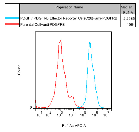 IV. Representative Data![]() Figure 2. Recombinant PDGF/PDGFRB Effector Reporter Cell stably expressing PDGFRB. ![]() Figure 3. Dose Response of Recombinant Human PDGF-BB in PDGF/PDGFRB Effector Reporter Cell(C26). ![]() Figure 4. Inhibition of Human PDGF-BB-induced Reporter Activity by PDGFRB Blocking Abs in PDGF/DGFRB Effector Reporter Cel(C26). Inhibition of Human PDGF-BB-induced Reporter Activity by PDGFB Neutralization Ab in PDGF/PDGFRB Effector Reporter Cell(C26). |