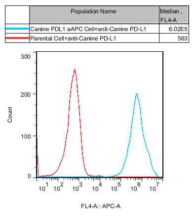Canine PDL1 aAPC Cell 作為 Canine PD1 Effector Reporter Cell 的靶細胞,Canine PDL1 aAPC Cell 藥靶模型很好的模擬了體內(nèi) PD1&PDL1 的信號轉(zhuǎn)導過程,原理見下圖所示。![]() Figure 1. Canine PDL1 aAPC Cell 細胞模型原理圖 |