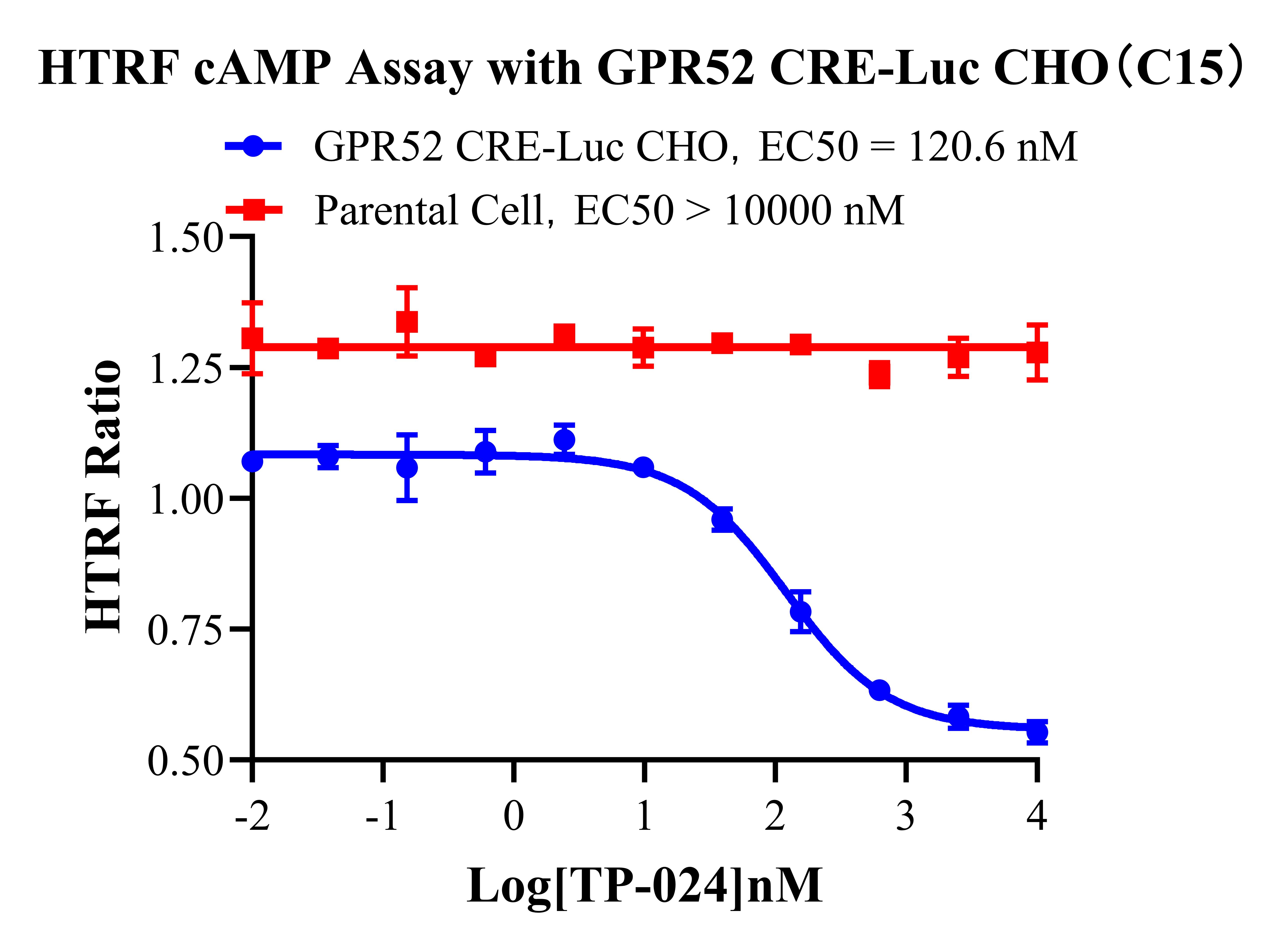 Figure 4. HTRF cAMP Assay with GPR52 CRE-Luc CHO(C15).