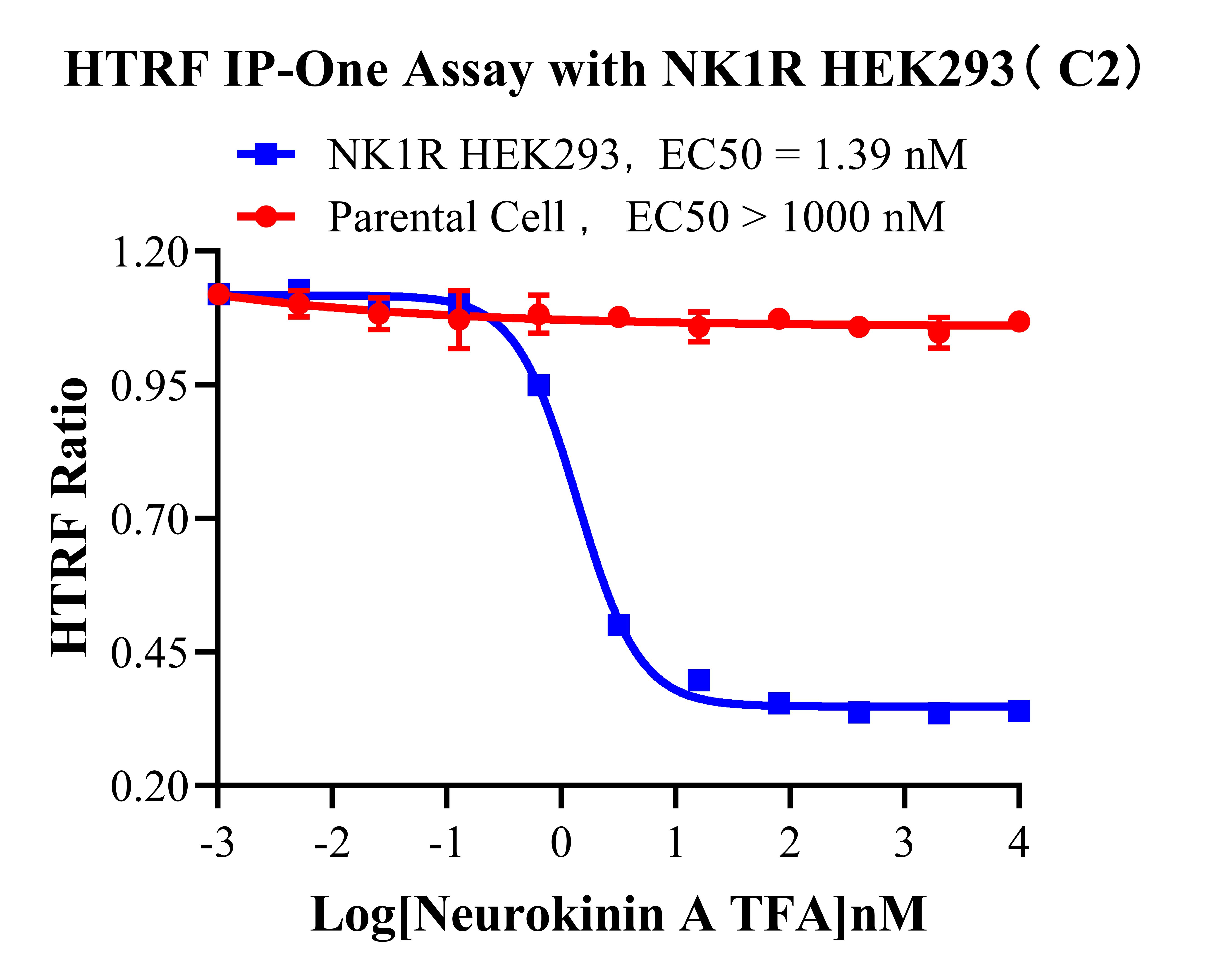 NK1R HEK293 細(xì)胞藥靶模型很好的模擬了體內(nèi) NK1R 的信號(hào)轉(zhuǎn)導(dǎo)過程,原理見下圖所示。