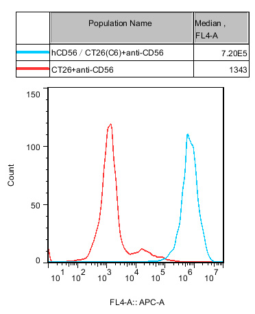 IV. Representative Data![]() Figure 1. Recombinant hCD56/CT26 stably expressing hCD56. |