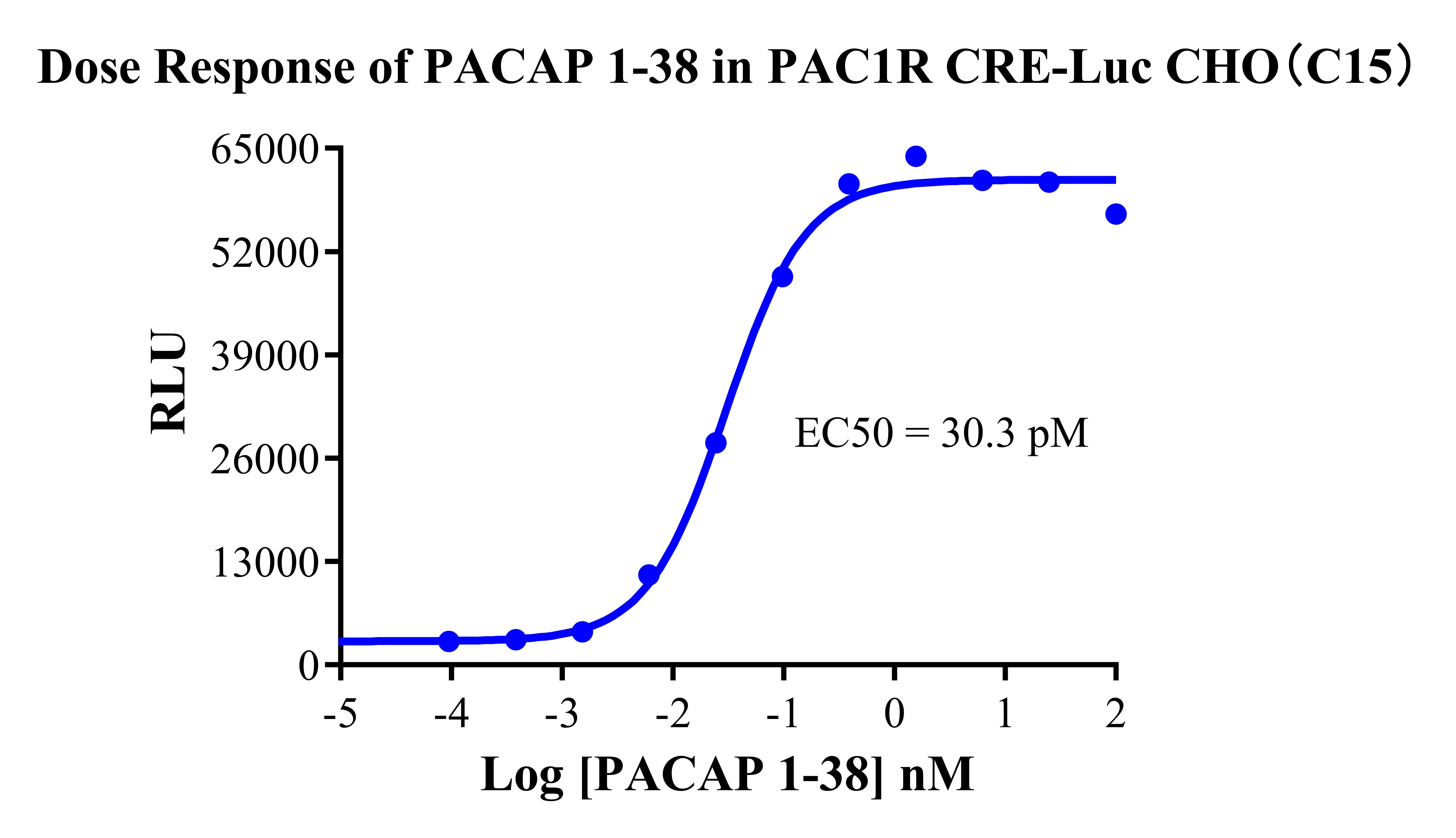 PAC1R CRE-Luc CHO 報告基因藥靶模型很好的模擬了體內(nèi) PAC1R 的信號轉(zhuǎn)導(dǎo)過程, 原理見下圖所示。![]() Figure 1. PAC1R CRE-Luc CHO 細胞模型原理圖 |