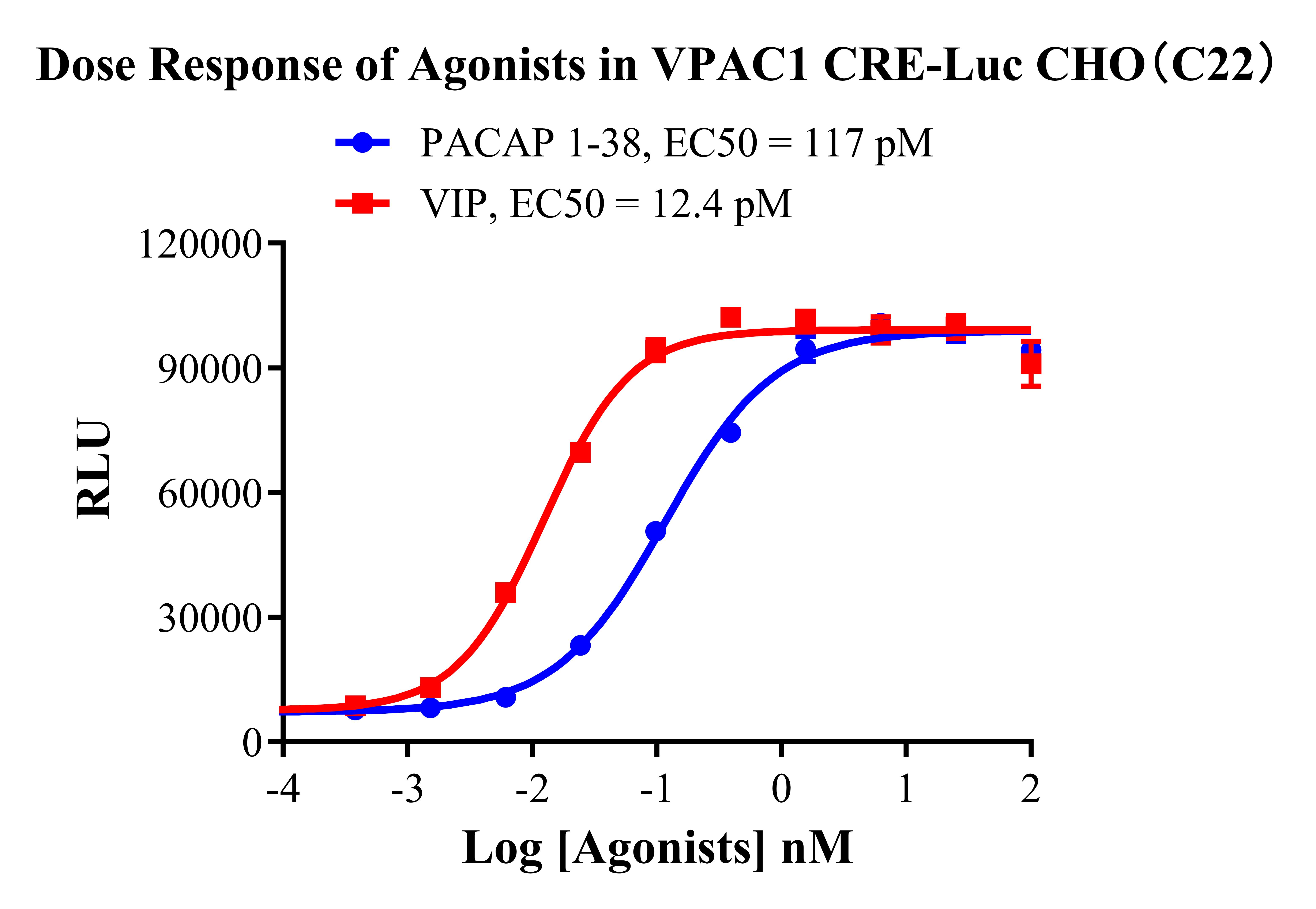 VPAC1 CRE-Luc CHO 報(bào)告基因藥靶模型很好的模擬了體內(nèi) VPAC1 的信號(hào)轉(zhuǎn)導(dǎo)過(guò)程, 原理見(jiàn)下圖所示。![]() Figure 1. VPAC1 CRE-Luc CHO 細(xì)胞模型原理圖 |