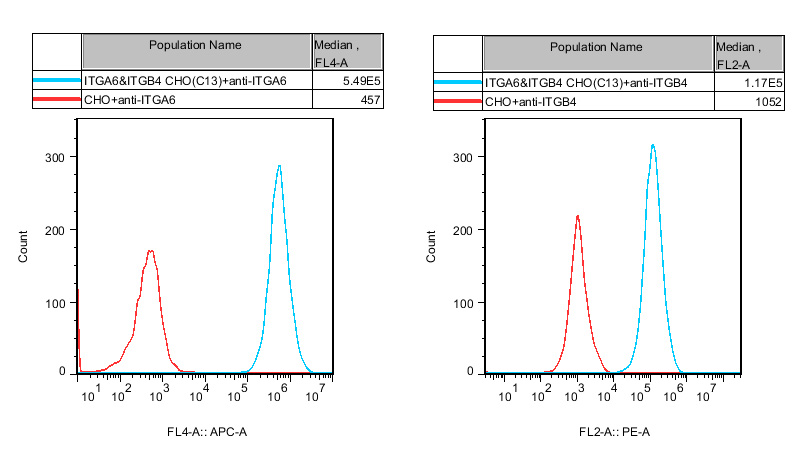 ![]() Figure 1. Recombinant ITGA6&ITGB4 CHO stably expressing ITGA6&ITGB4.