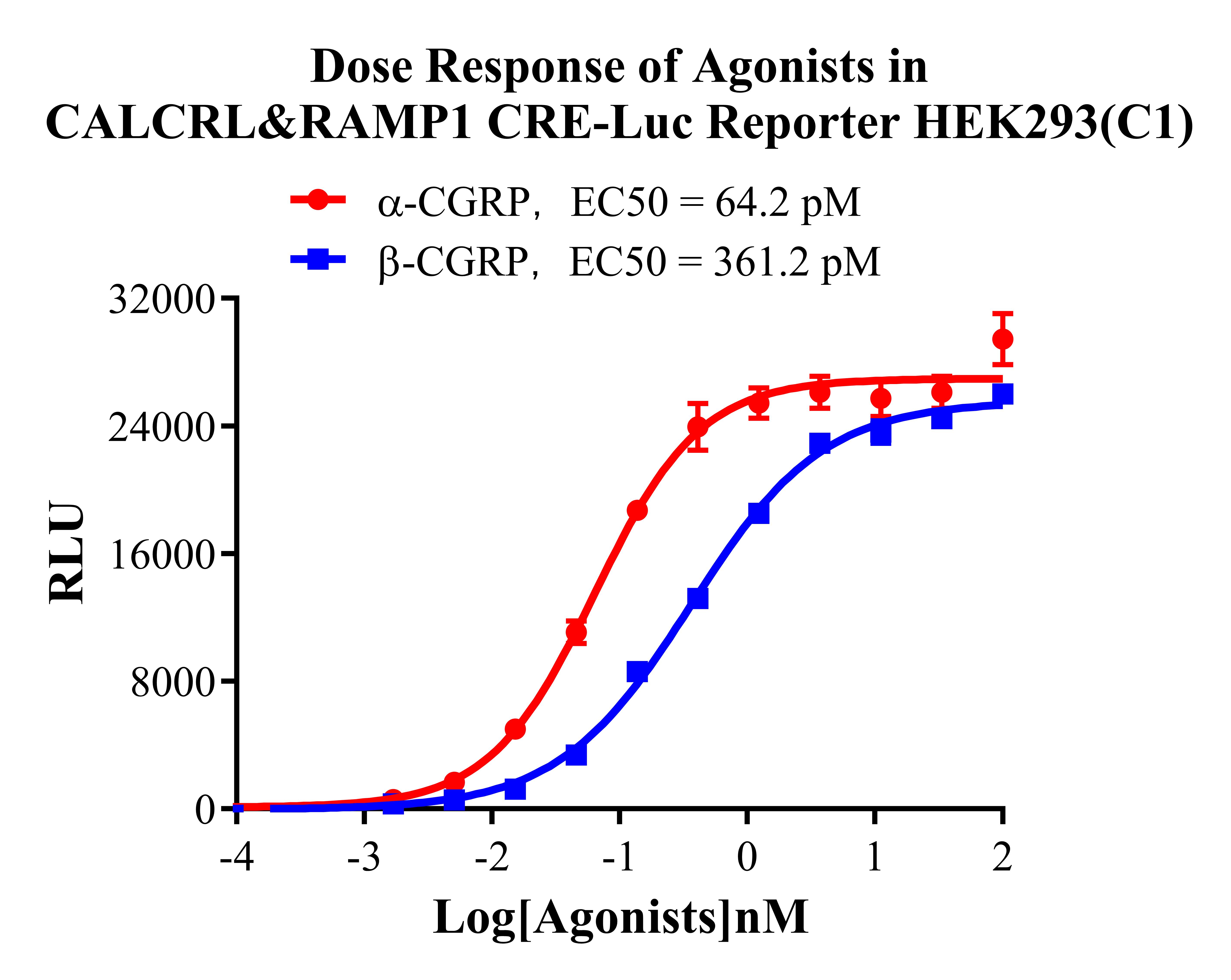 ![]() Figure 1. CALCRL&RAMP1 CRE-Luc HEK293 細(xì)胞模型原理圖 |