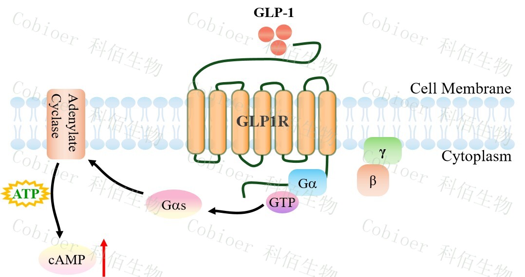 cAMP 在 G 蛋白偶聯(lián)受體(GPCR)信號(hào)轉(zhuǎn)導(dǎo)中是一種關(guān)鍵的第二信使。當(dāng)配體結(jié)合到 GPCR,構(gòu)象發(fā)生變化,激活受體接著激活 G 蛋白,Gs 的激活導(dǎo)致腺苷酸環(huán)化酶調(diào)控 cAMP 的升高。GLP1R 藥靶模型很好的模擬了體內(nèi) GLP1R 的信號(hào)轉(zhuǎn)導(dǎo)過(guò)程,原理見(jiàn)下圖所示。![]() Figure 1. GLP1R CHO 細(xì)胞模型原理圖 |