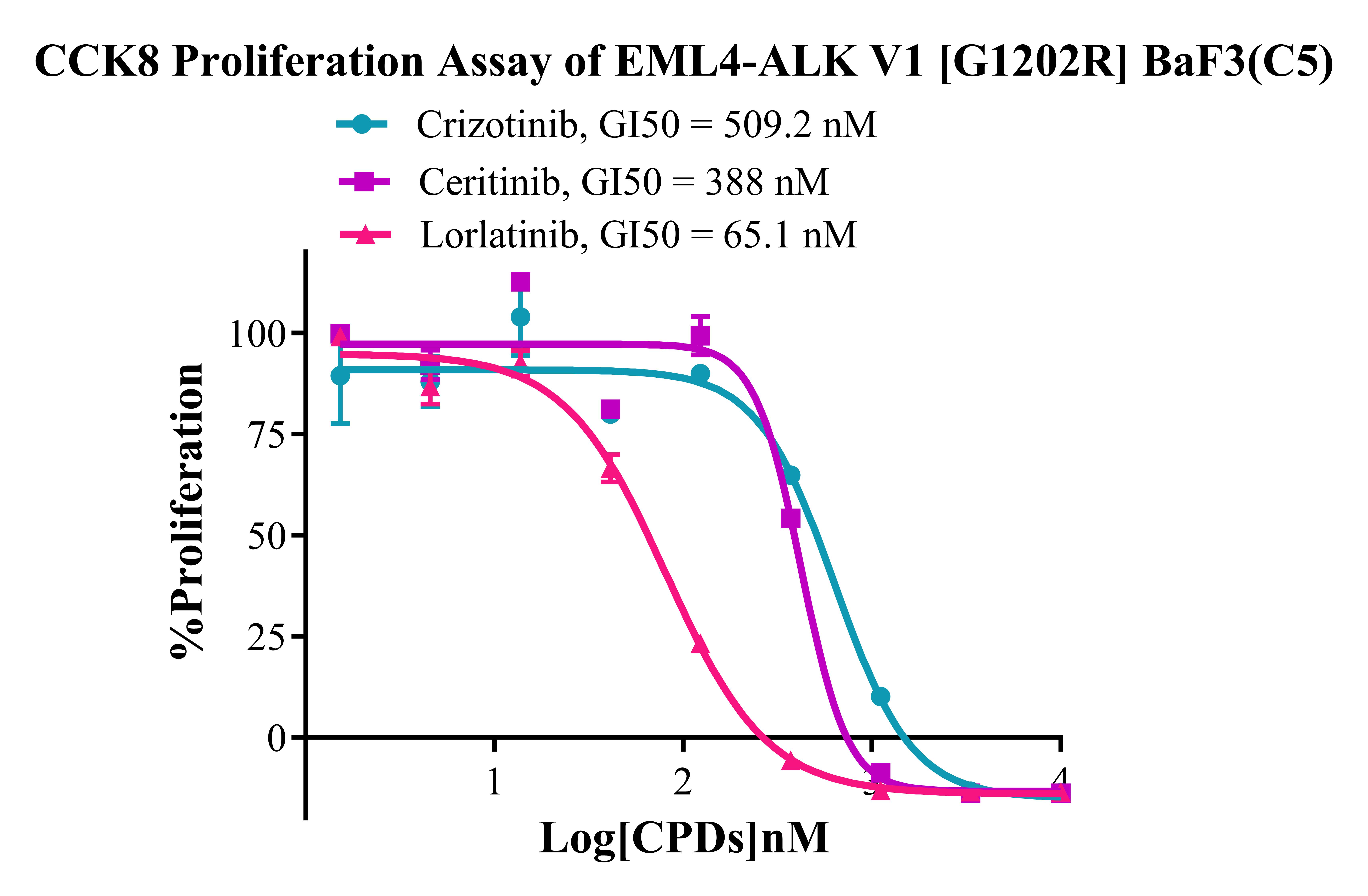 Figure 5. CCK8 Proliferation Assay of EML4-ALK v1 [G1202R] BaF3(C5).