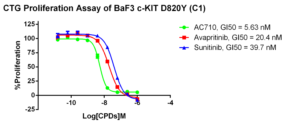 Figure 3. CTG Proliferation Assay of BaF3 c-KIT D820Y (C1).