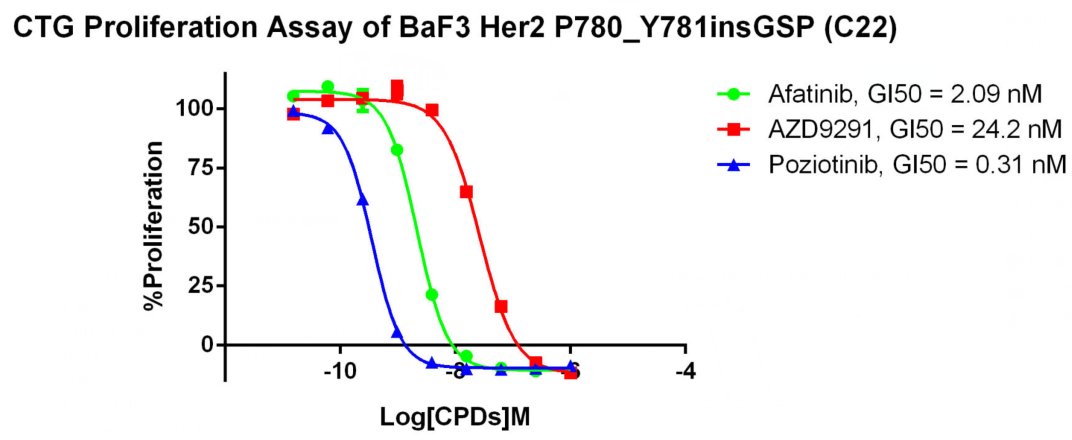 2.Anti-proliferation assay Figure 2.CTG Proliferation Assay of BaF3 Her2 P780_ Y781insGSP (C22). |