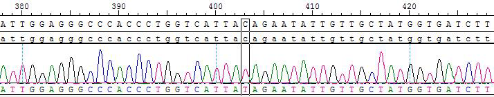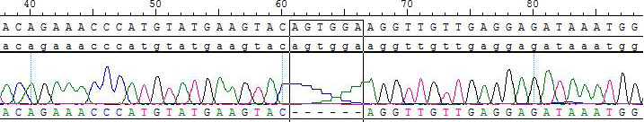 2.Sanger of c-Kit W557_K558del-T670I/BaF3 Figure 2. c-Kit W557_K558del-T670I/BaF3 T670I Figure 3. c-Kit W557_K558del-T670I/BaF3 W557_K558del |