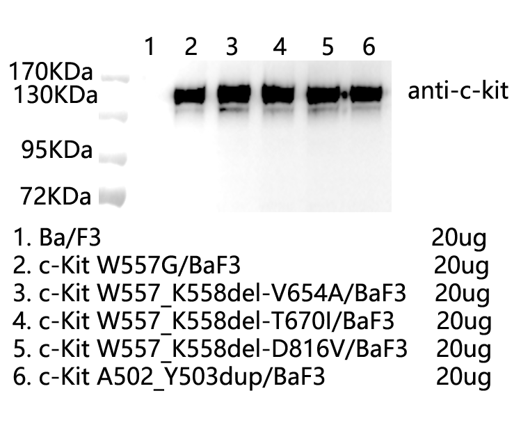 1. WB of c-Kit W557_K558del-D816V/BaF3