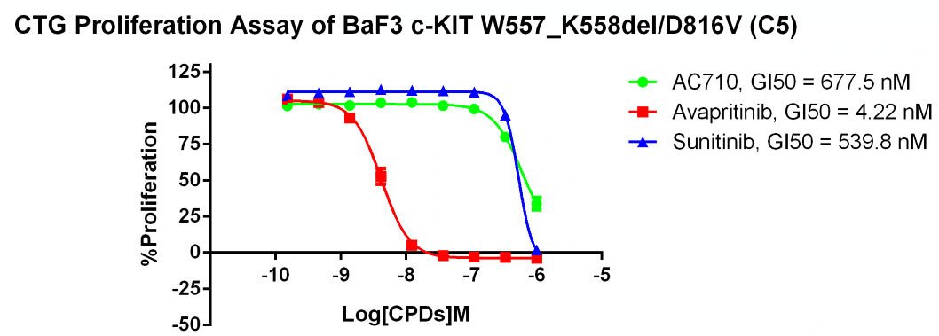 Figure 4. CTG Proliferation Assay of BaF3 c-KIT W557_ K558del/D816V (C5).
