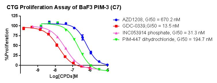 1. Anti-proliferation assay Figure 1. CTG Proliferation Assay of BaF3 PIM-3(C7). |