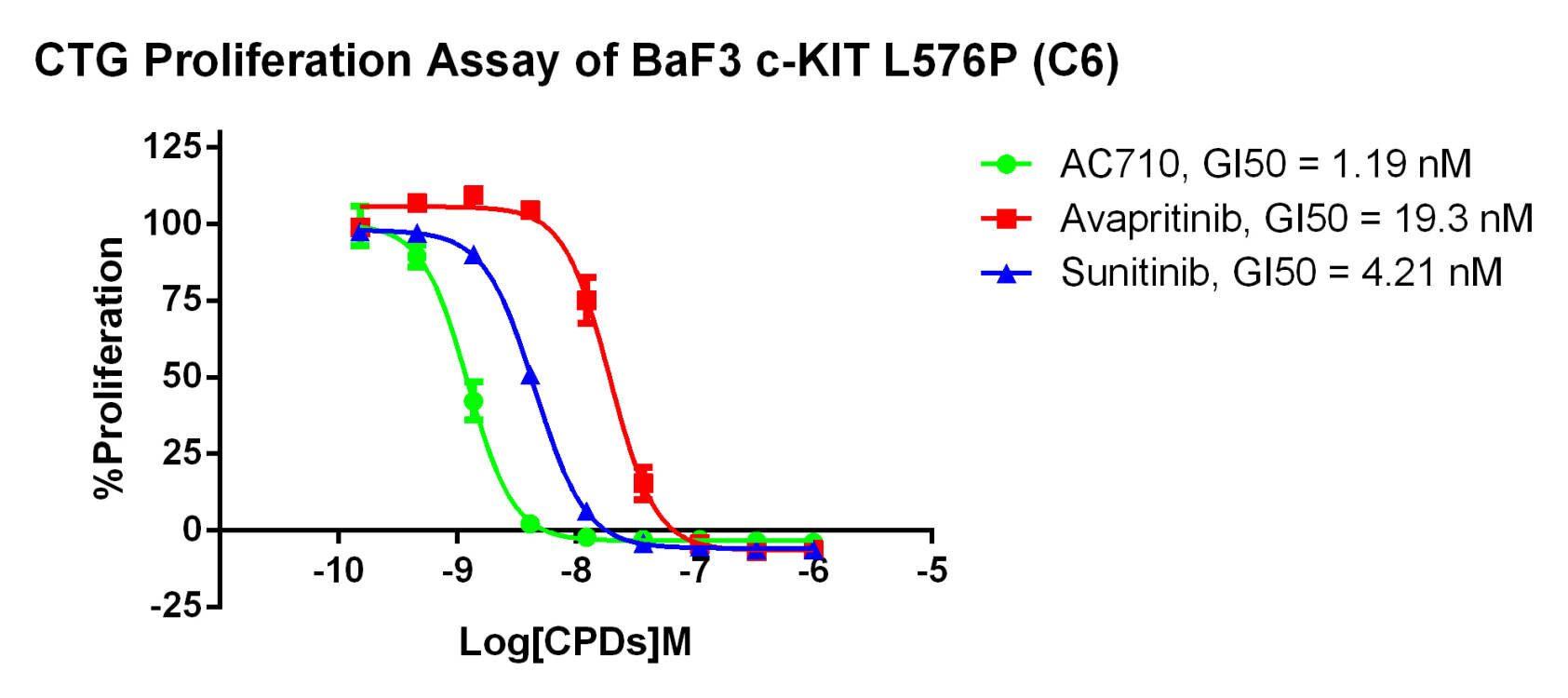Figure 3. CTG Proliferation Assay of BaF3 c-KIT L576P (C6).