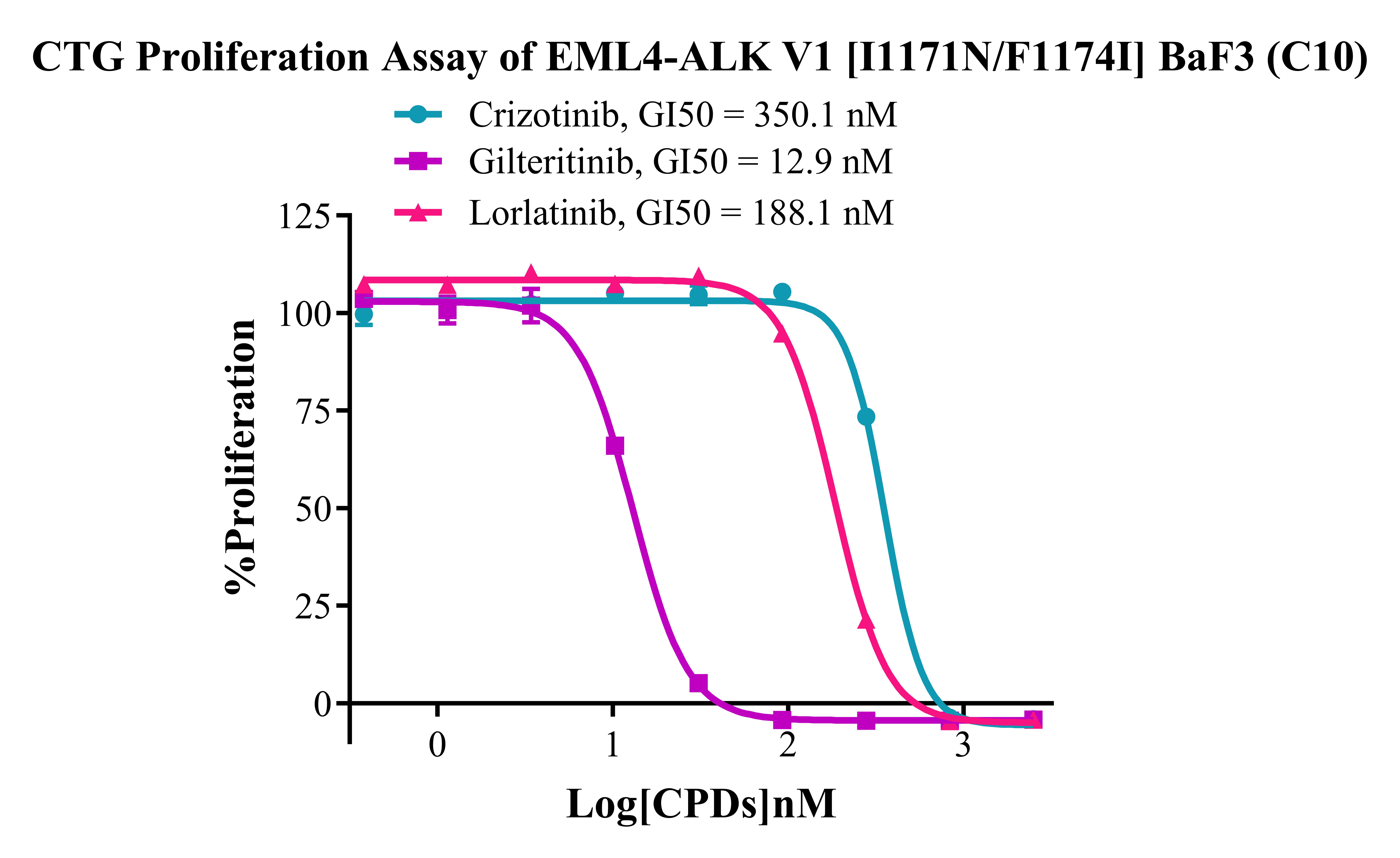 Figure 6. CTG Proliferation Assay of EML4-ALK V1 I1171N/F1174I BaF3(C10).