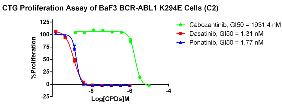 3. Anti-proliferation assay Figure 4. CTG Proliferation Assay of BaF3 BCR-ABL1 K294E Cells (C2). |