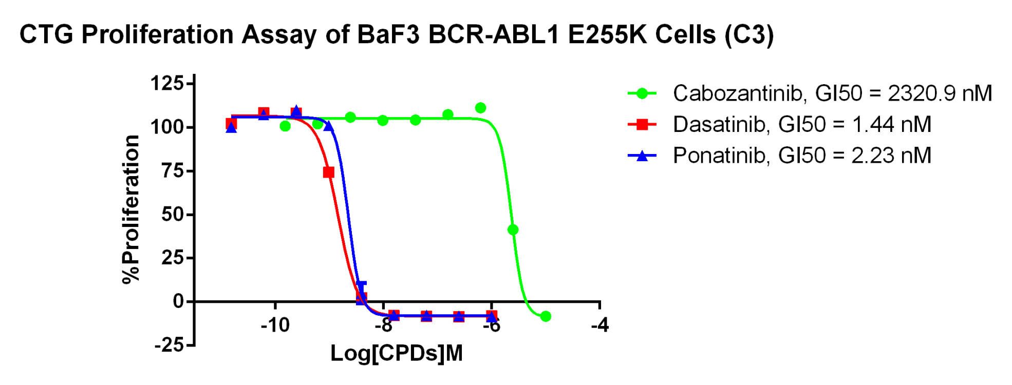 3. Anti-proliferation assay Figure 4. CTG Proliferation Assay of BaF3 BCR-ABL1 E255K Cells (C3). |