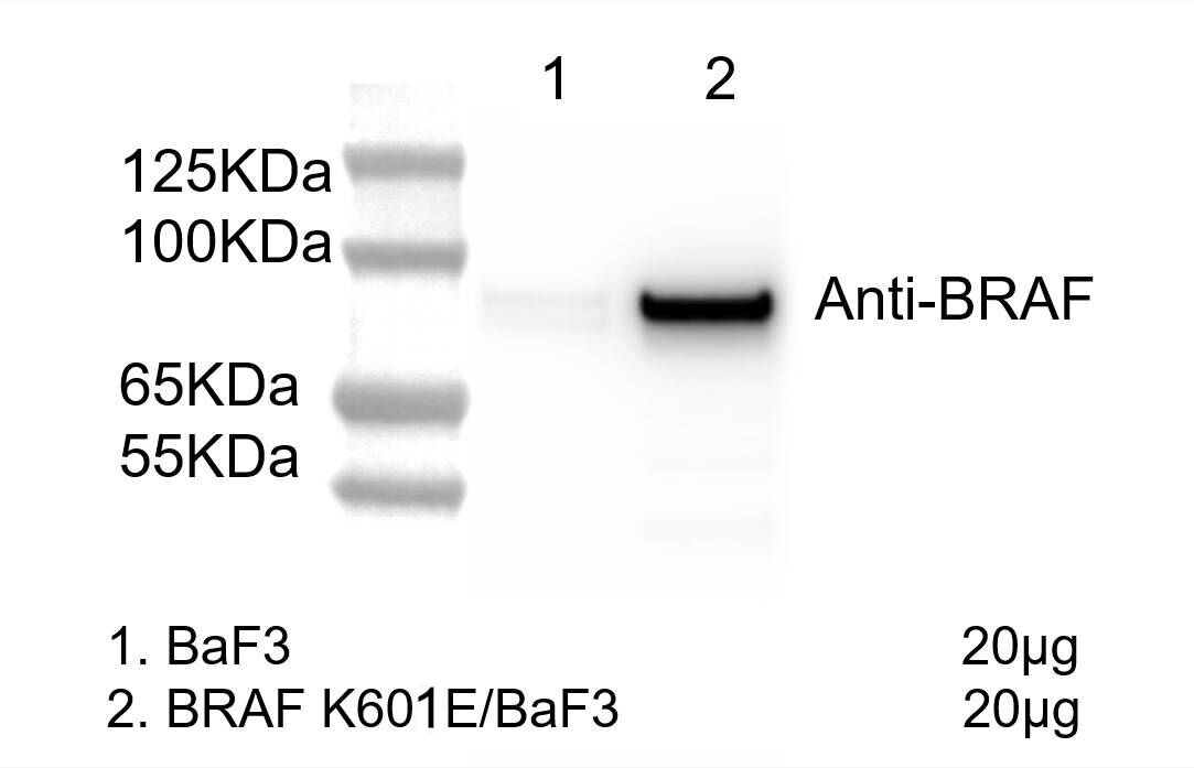 BRAF K601E lies within the activation segment in the kinase domain of the Braf protein. K601E results in increased Braf kinase activity and downstream activation of MEK and ERK in cell culture, and induces cell proliferation and cell viability in culture. | |