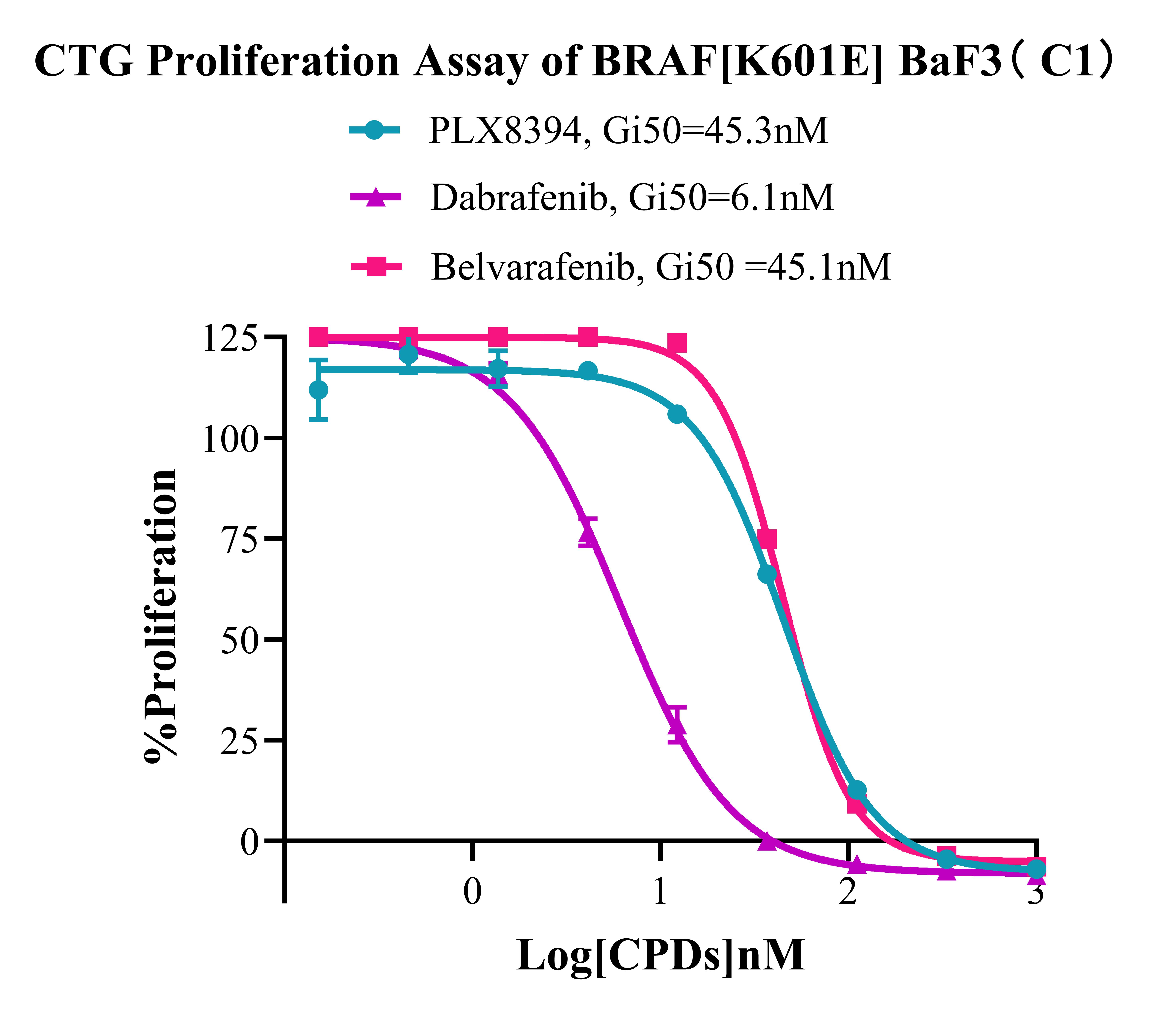 Figure 4. CTG Proliferation Assay of BRAF [K601E] BaF3(C1).