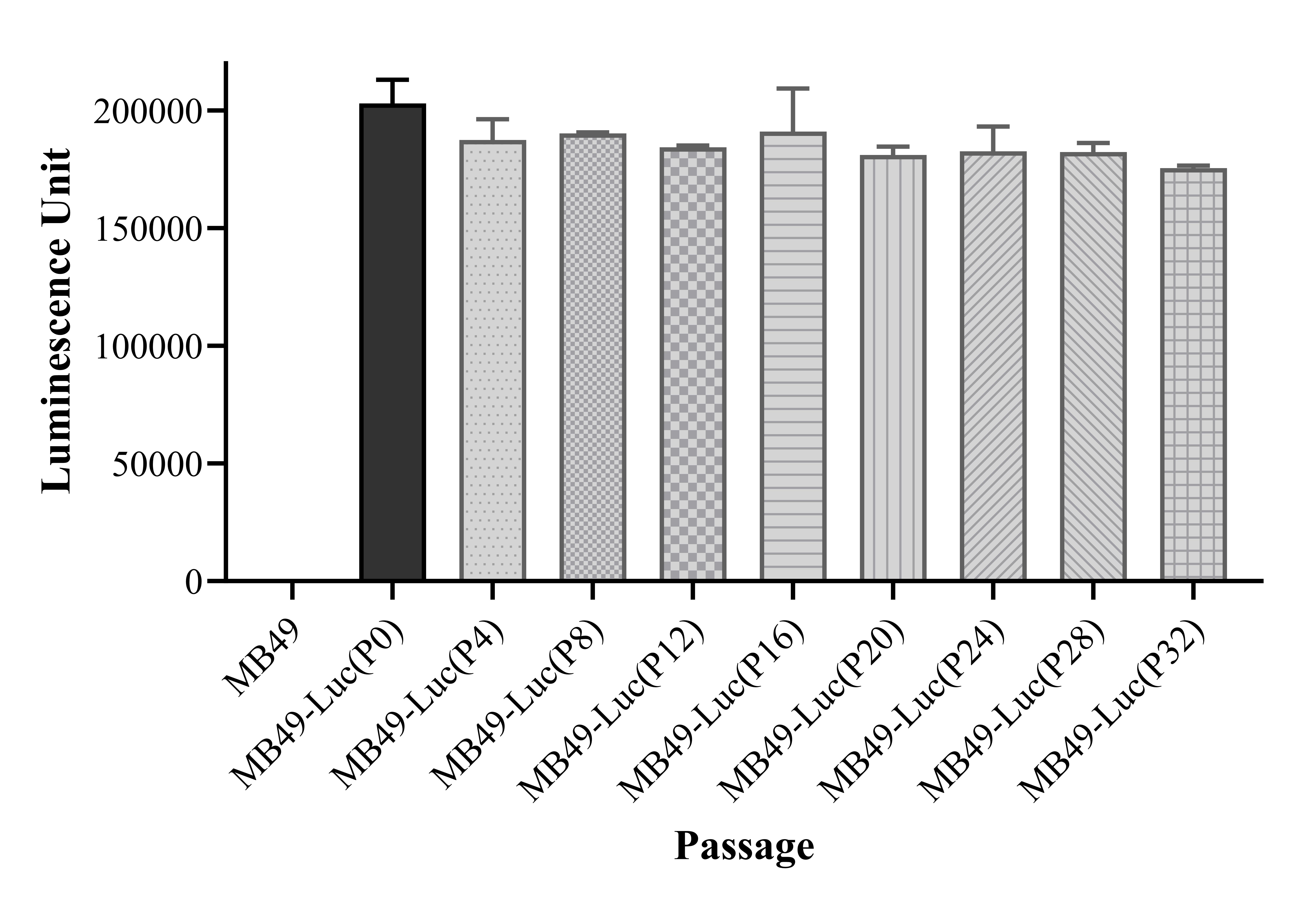 Figure 1. Stablity test results. MB49-Luc showed at least 32 passage stability with similar luminescence unit.
