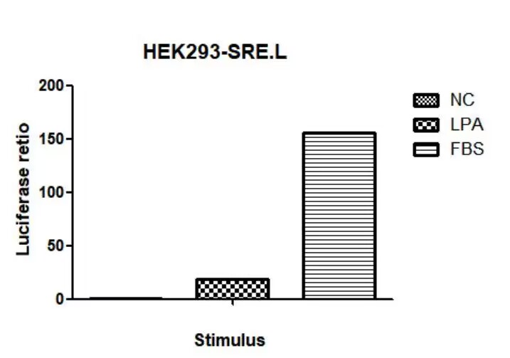 The SRE Reporter – HEK293 cell line is designed for monitoring the activity of the MAPK/ERK signaling pathway. The SRE Reporter – HEK293 cell line contains a firefly luciferase gene under the control of SRE responsive elements stably integrated into HEK293 cells, resulting in an ERK pathway-responsive reporter cell line.