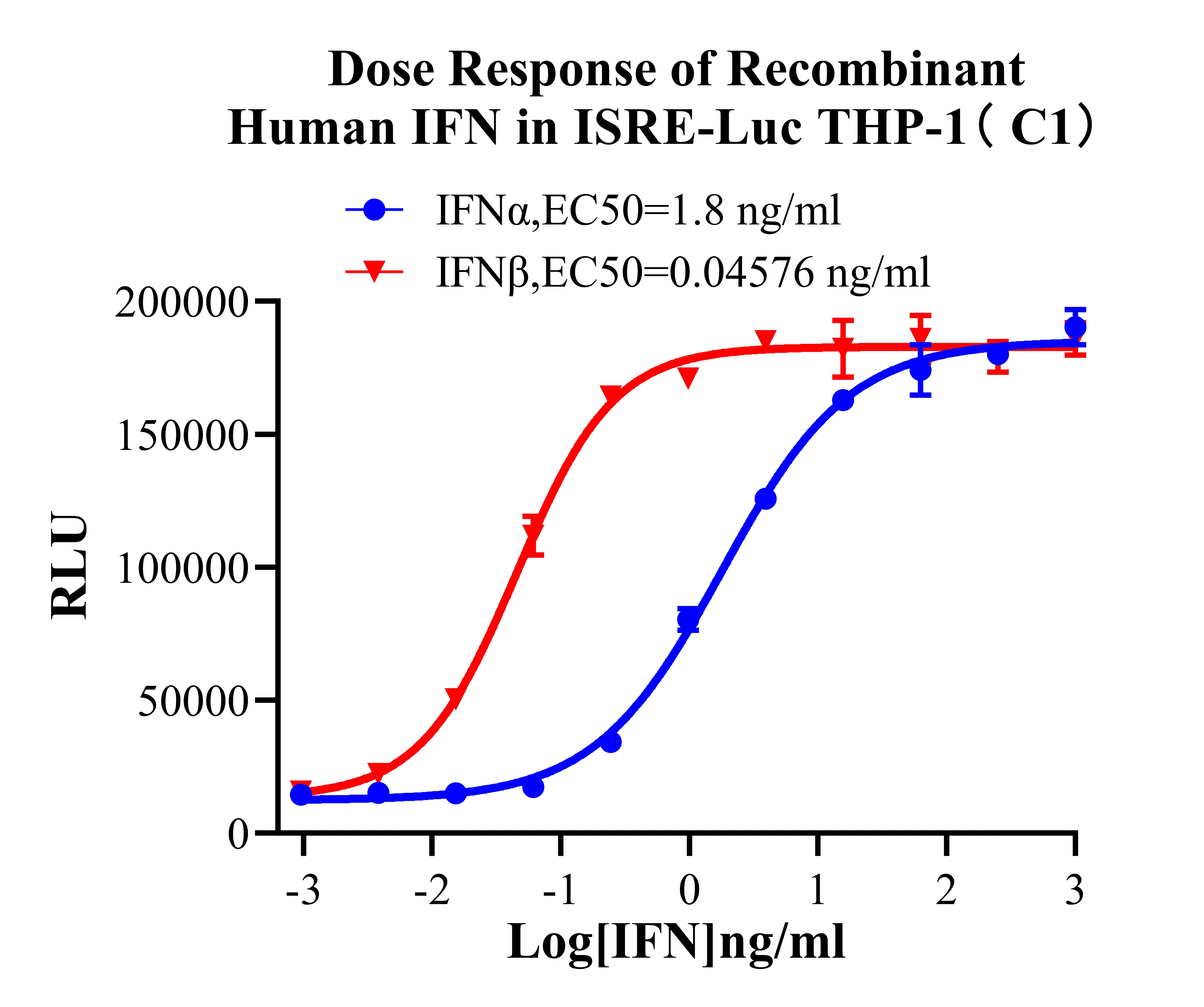 Figure 2. Dose Response of recombinant Human IFN in ISRE-Luc THP-1.