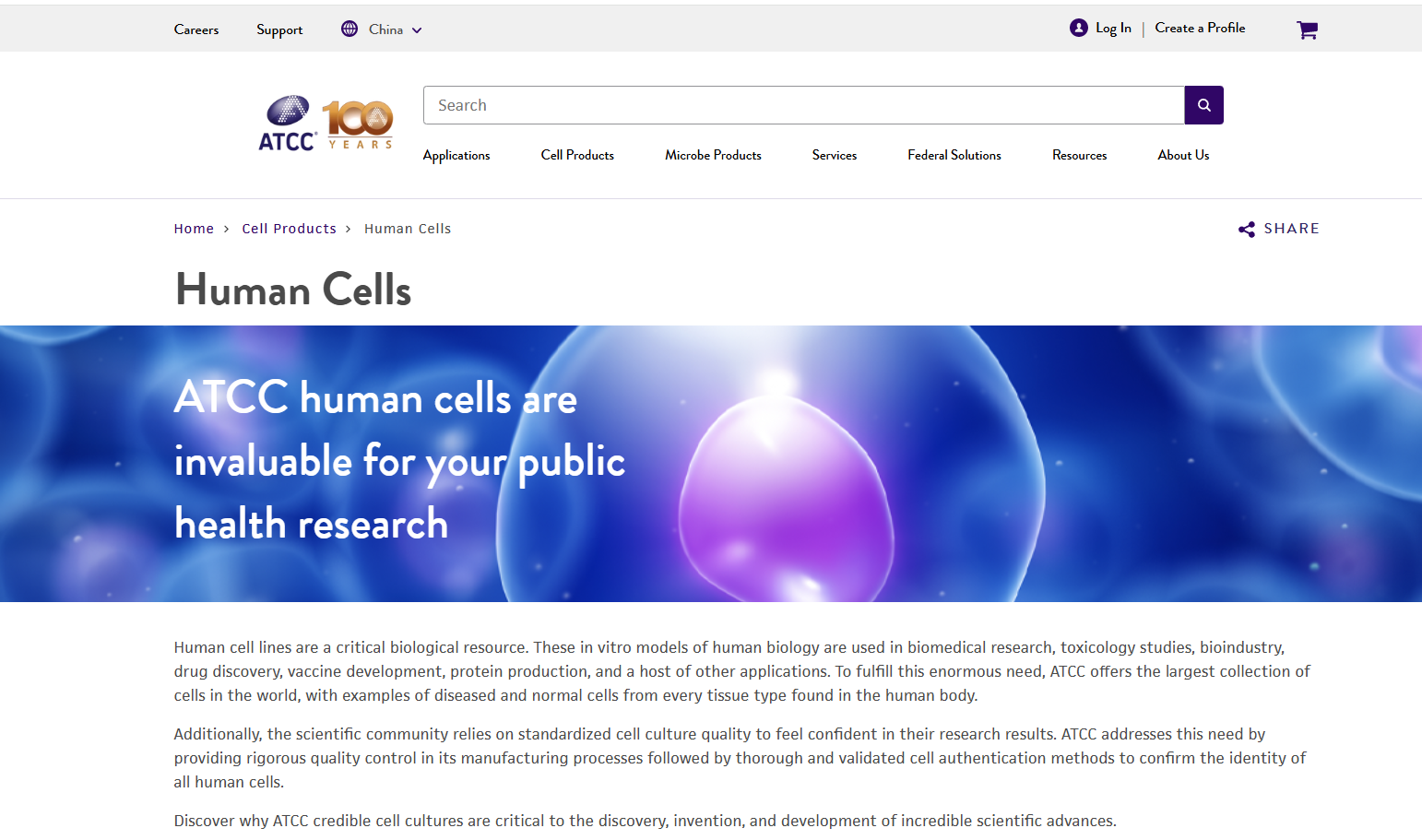 ATCC (American Type Culture Collection) 非營利性的全球生物資源中心和標(biāo)準(zhǔn)組織,也是認(rèn)證細(xì)胞系和微生物的領(lǐng)先開發(fā)商和供應(yīng)商,擁有世界上最大、最廣泛的人類和動(dòng)物研究細(xì)胞系產(chǎn)品目錄,主要提供各種細(xì)胞系、微生物株、原代細(xì)胞、基因組和其他生物材料。它包含了數(shù)千種細(xì)胞系,包括人類、動(dòng)物和昆蟲的細(xì)胞系。常見的類型包括癌癥細(xì)胞系、免疫細(xì)胞、干細(xì)胞、以及轉(zhuǎn)基因細(xì)胞系。且細(xì)胞系數(shù)據(jù)中包含了詳細(xì)的細(xì)胞表征信息,如形態(tài)學(xué)、分子標(biāo)記、基因表達(dá)譜、增殖能力、傳代歷史等。它所提供的細(xì)胞形態(tài)圖是國際公認(rèn)的細(xì)胞標(biāo)準(zhǔn),大多數(shù)研究學(xué)者在購買細(xì)胞后都會(huì)與ATCC數(shù)據(jù)庫中的細(xì)胞圖片作對(duì)照。