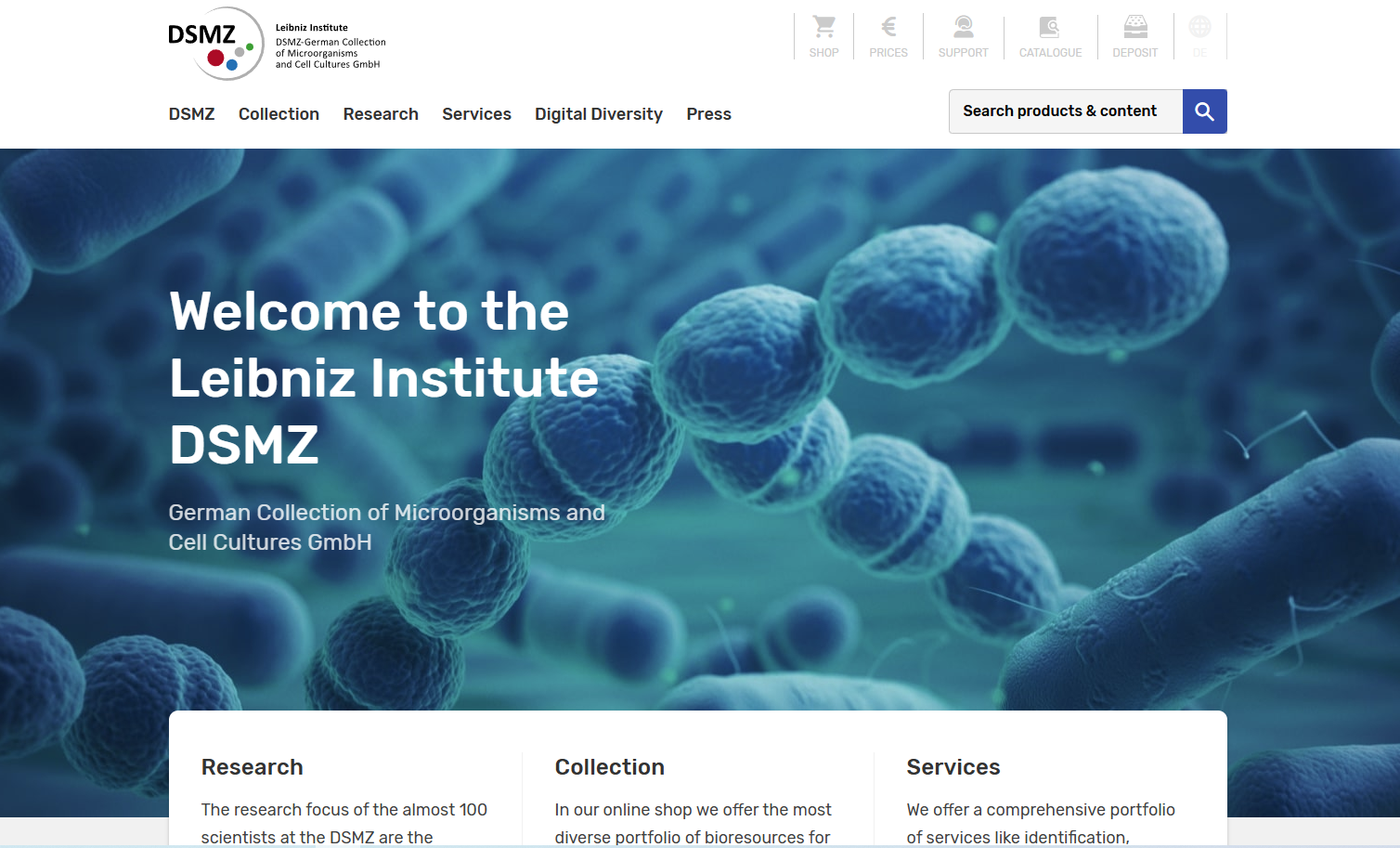 DSMZ成立于1969年,是德國的國家菌種保藏中心。該中心一直致力于細(xì)菌、真菌、質(zhì)粒、抗菌素、人體和動(dòng)物細(xì)胞、植物病毒等的分類、鑒定和保藏工作。作為世界上最大的保藏中心之一,DSMZ目前收藏超過70,000種產(chǎn)品,包括約31,000種不同的細(xì)菌和6,500種真菌菌株,830種人和動(dòng)物細(xì)胞系,1,500種植物病毒和抗血清,2,000種質(zhì)粒和噬菌體以及13,000種不同類型的細(xì)菌基因組DNA。